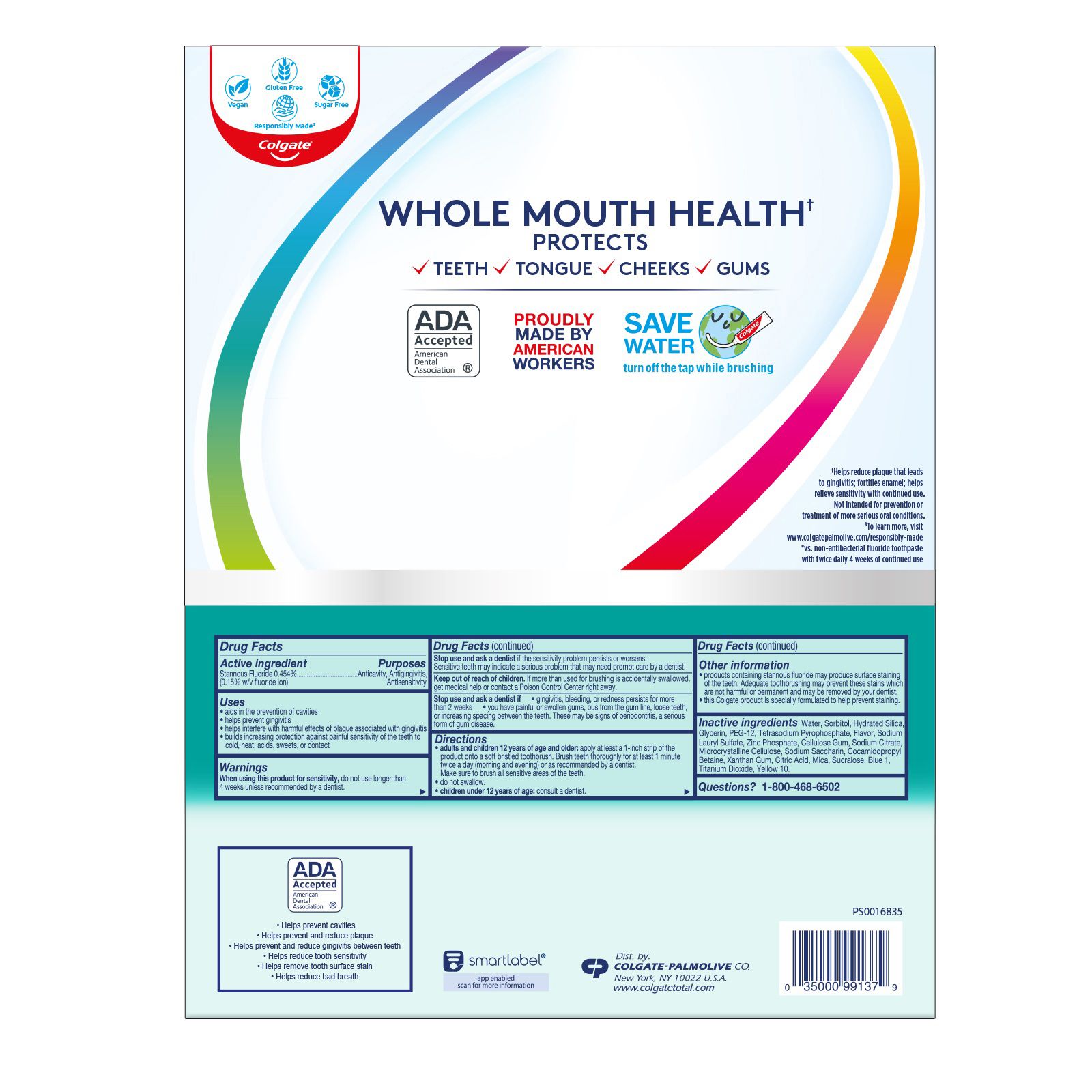 Colgate Total Fresh Mint Stripe Toothpaste Gel removes teeth stains for a whiter smile. This multi-benefit Colgate Total toothpaste provides 42%* more sensitivity relief than a regular fluoride toothpaste while removing and preventing surface stains. This mint gel toothpaste leaves your mouth feeling fresh after every brush. Remove surface stains by brushing twice daily with this tooth whitening toothpaste. Plus, this sugar-free and gluten-free whitening toothpaste not only helps remove stains for whiter teeth, but also keeps your whole mouth healthy by fighting bacteria on teeth, tongue, cheeks, and gums for 12 hours.** For good oral hygiene, brush your teeth twice a day for two minutes. You can smile confidently when you use Colgate Total tooth whitening toothpaste gel. Leave your mouth feeling clean and fresh and remove surface stains with Colgate Total Toothpaste.