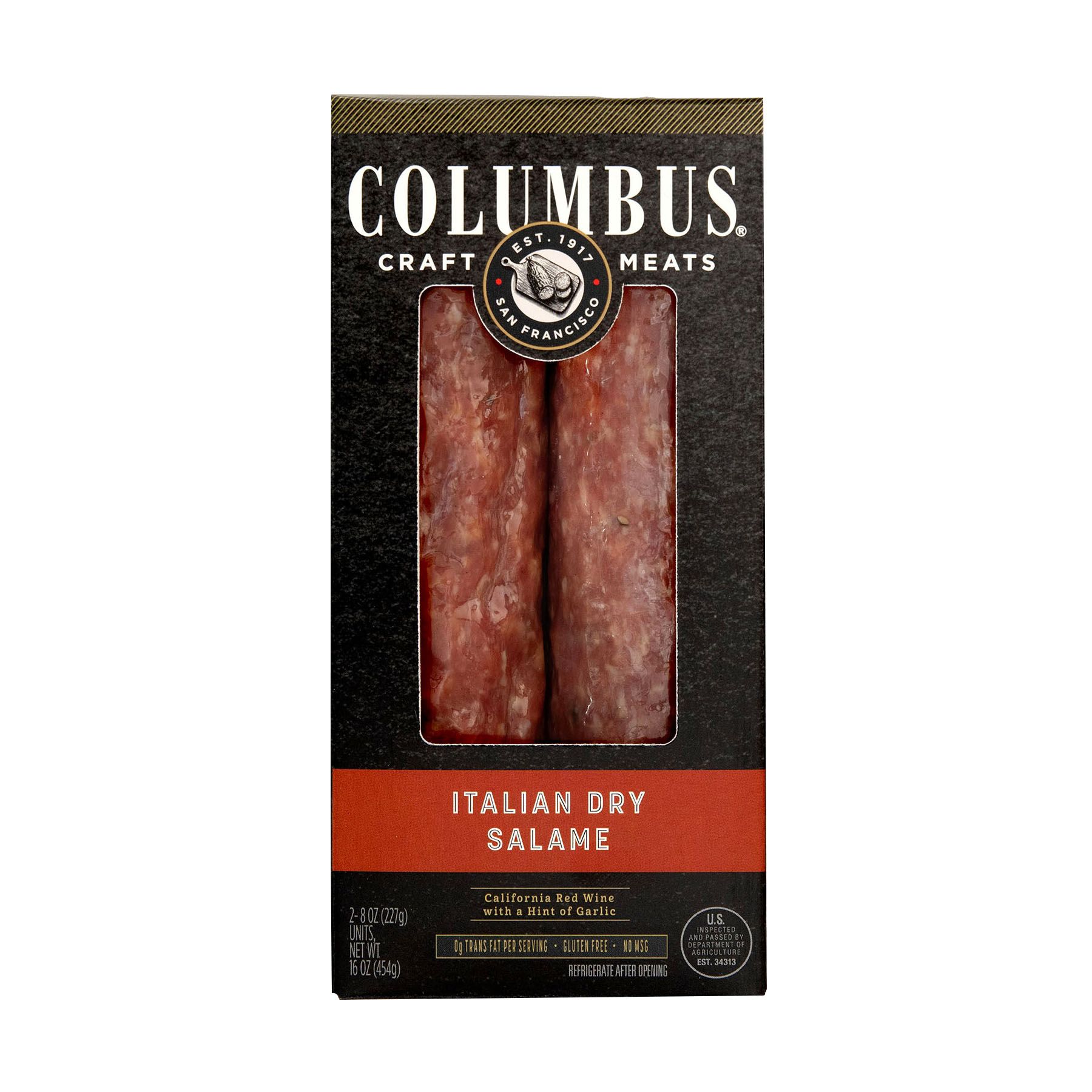 Columbus Italian Dry Salami has made San Francisco - its city of birth - the salame capital of the U.S. Columbus has been making theirs since 1917, when their founders adapted a recipe for Milano style Salame. They use only select cuts of pork, cracked black pepper, a signature blend of spices, and burgundy wine - giving it a unique richness and aroma, and a nice bite from the slow curing. Aged 21 to 33 days depending on size.