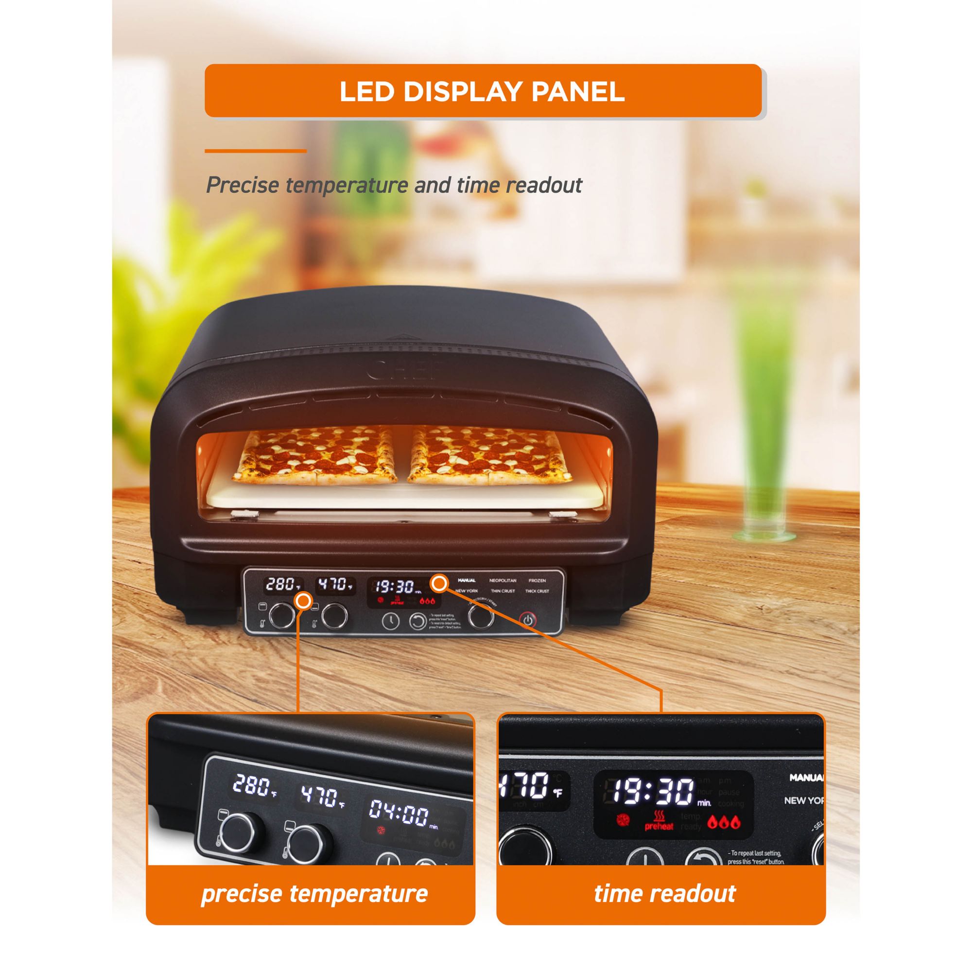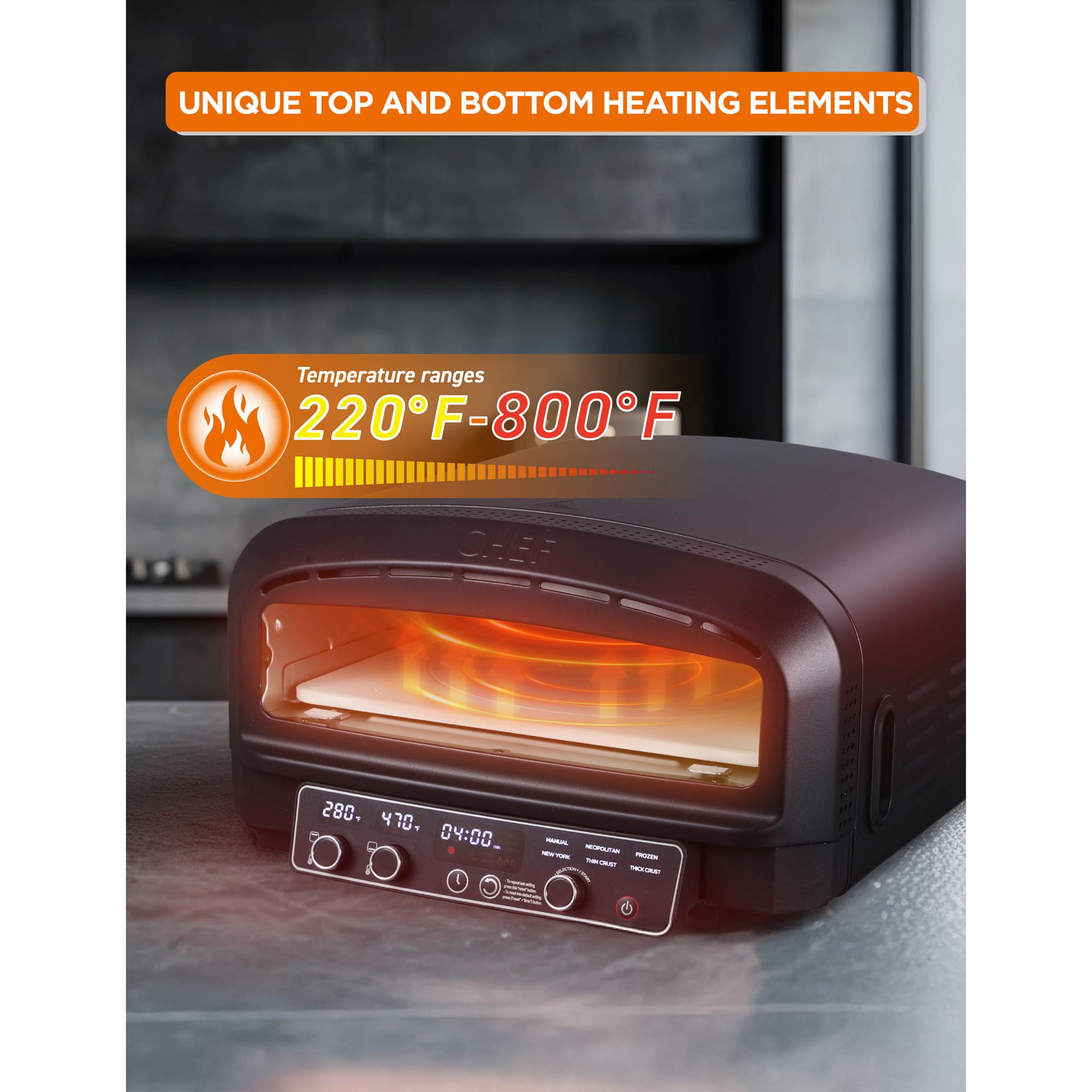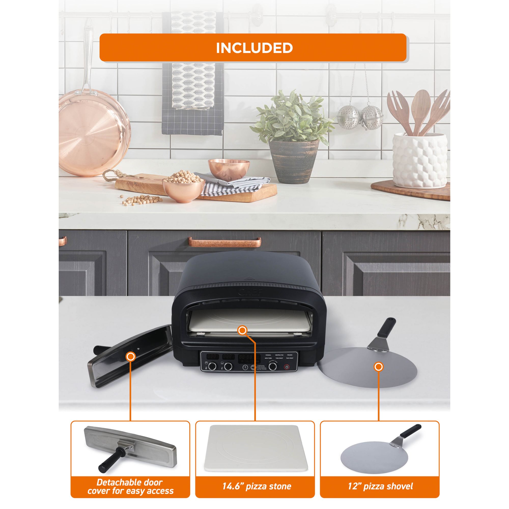 Commercial Chef Indoor Electric Pizza Oven with Serving Set - Black