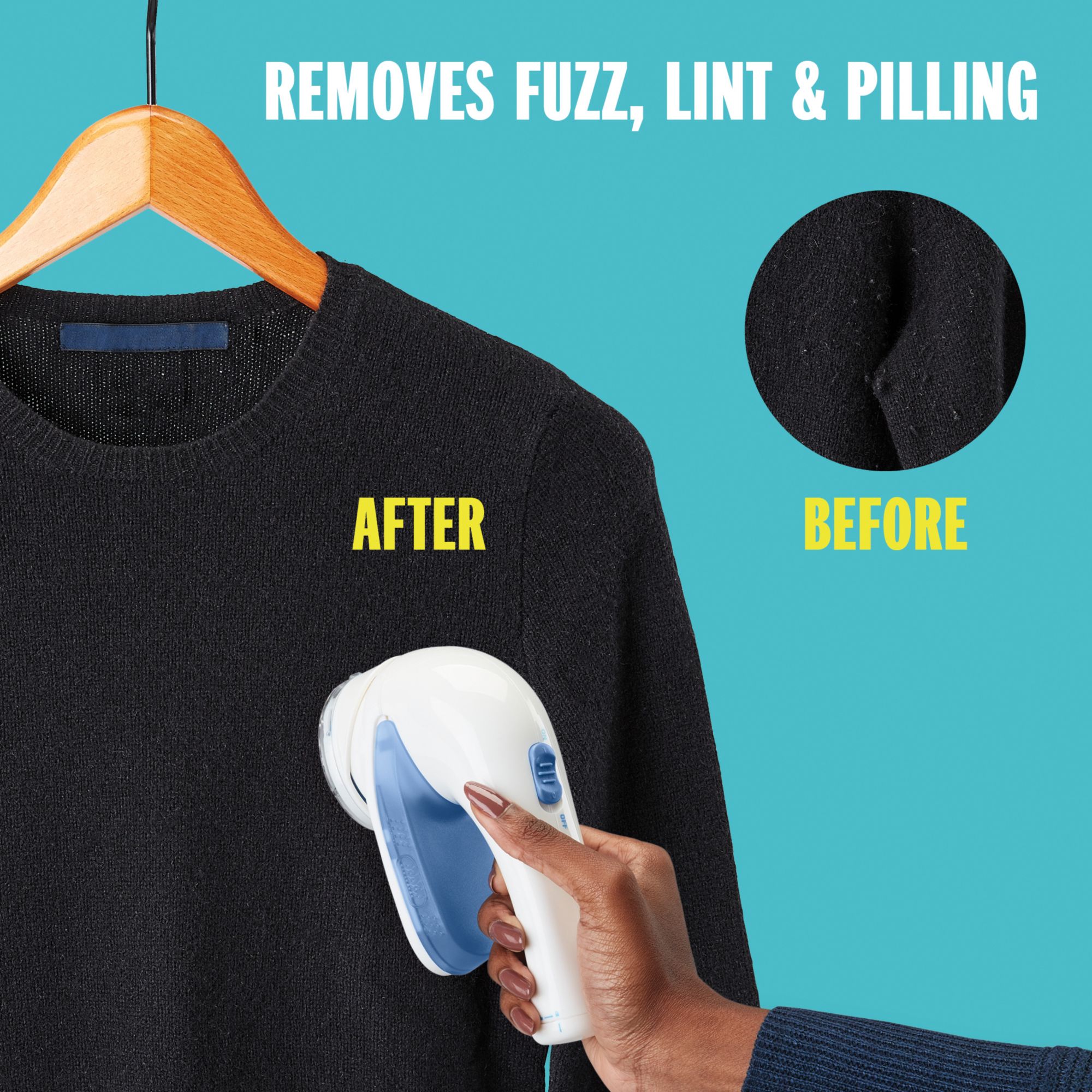 Fabric Defuzzer: This battery-powered fabric shaver safely removes pills and unwanted broken and matted fibers from your favorite clothes, catching them in the detachable lint catcher for disposal. Easy Operation: This easy-to-use fuzz remover features a comfortable ergonomic grip and three depth settings to quickly shave fuzz, pilling and lint from sweaters, clothing, furniture and upholstery. Versatile Design: Fully adjustable for a variety of fabric types, this fabric shaver features large shaving head for efficient use and a detachable lint catcher for easy cleanup. Requires two AA batteries (not included). Great for Travel: With its compact size and cordless operation, this defuzzer is portable and perfect for travel or home use. Stores easily in a drawer, suitcase or wardrobe travel kit. Innovative Garment Care: From fabric shavers and traditional irons to garment steamers, both handheld and full size/upright, Conair makes high-quality garment care tools for all users.