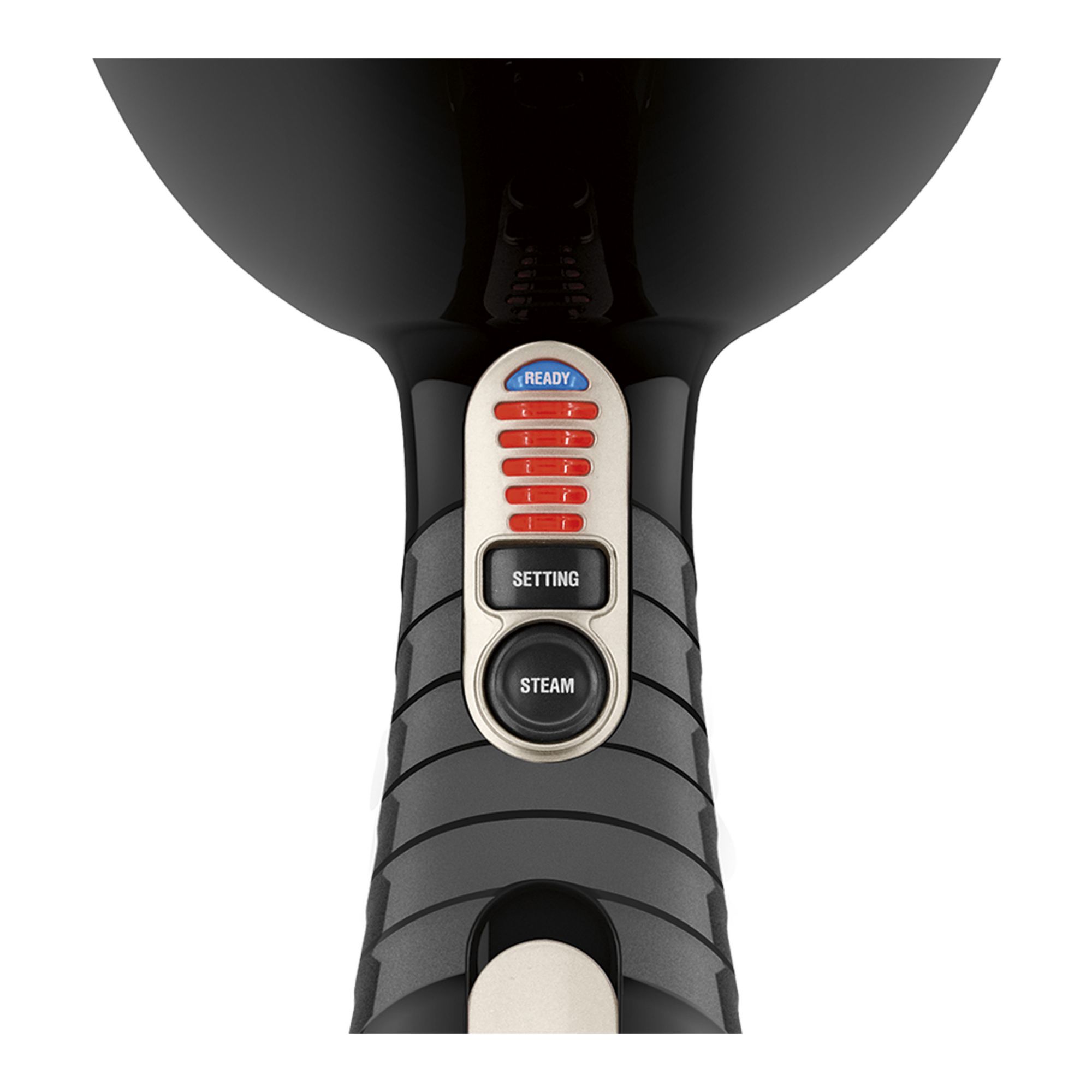Heated dual-slotted ceramic-coated aluminum sole plate for more steam and faster results 5 steam settings from delicates to supercharged Turbo 1875W of Turbo power, so it’s faster and easier than ironing Use horizontally or vertically Bonuses: Built in Creaser and 3-in-1 silicone band, bristle brush, and delicate fabric spacer attachment LED Power; Turbo; Ready light Kills 99.9% of germs and bacteria Includes garment steamer, silicone band, bristle brush, and delicate fabric spacer