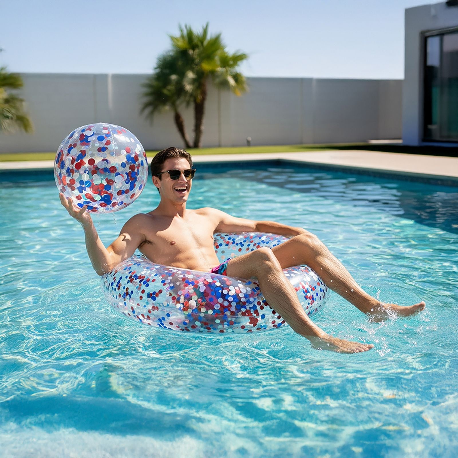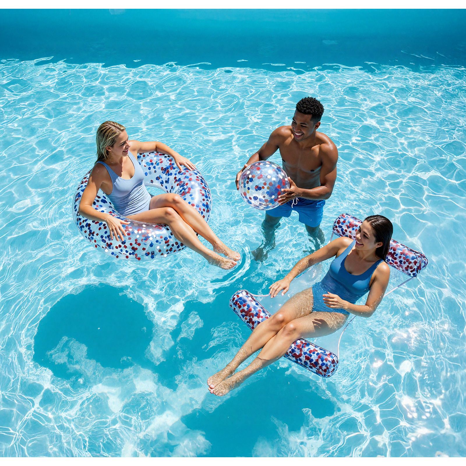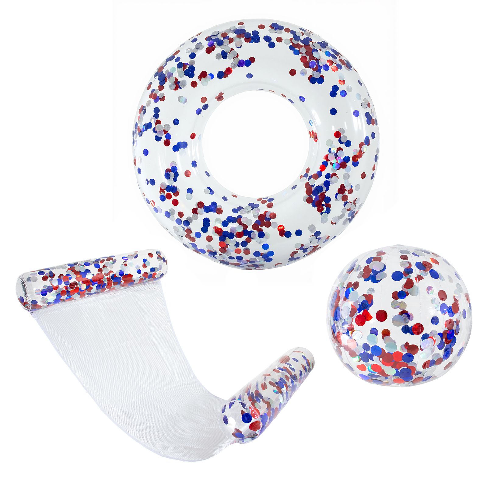 Confetti Party Pack 42" Confetti Tube, Beach Ball and Hammock - RWB, 3 pk.