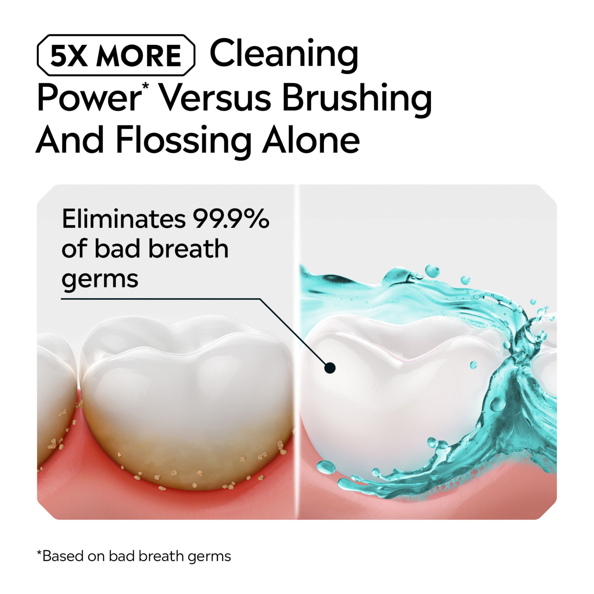 A germ-killing mouthwash for bad breath and plaque, Listerine is 5X more effective than flossing for plaque reduction*, all while giving you fresh breath and germ protection *Sustained plaque reduction above the gumline after a dental cleaning