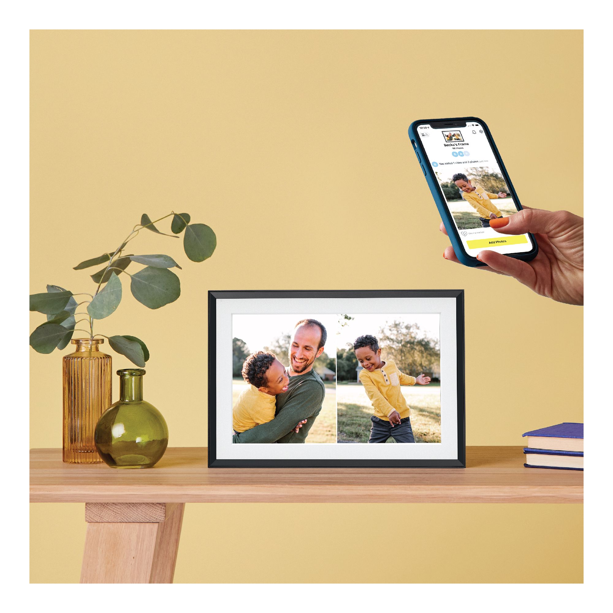 Adjusts photo brightness with auto-dimming technology, shutting the frame off at night
