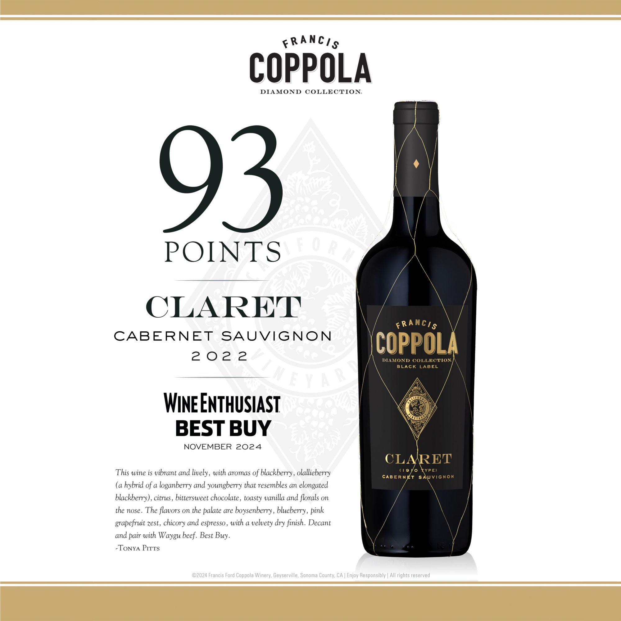 In 1972, legendary filmmaker Francis Ford Coppola had a vision of a wonderland among the rolling hills of Northern California wine country. Enduring the twists and turns, peaks and valleys (and multiple brushes with bankruptcy) along that winding road, Francis Coppola never gave up on his desire to create a wine designed "to celebrate the love of life." Crafted with the same passion and determination he brings to his films, the Diamond Collection is a tribute to all those dreamers and risk-takers like himself. Every member of the Diamond Collection is a testament to the family's craftsmanship - their crown jewel, the Claret Cabernet Sauvignon red wine, is a Bordeaux-style blend made from grapes found all across the state of California. Every bottle of Claret reflects a diversity of varietals and vineyards whose soils contribute to the wine's complexity. So, join the Coppola family, get a glimpse of beautiful Sonoma County, and savor a real taste of the diamond life.