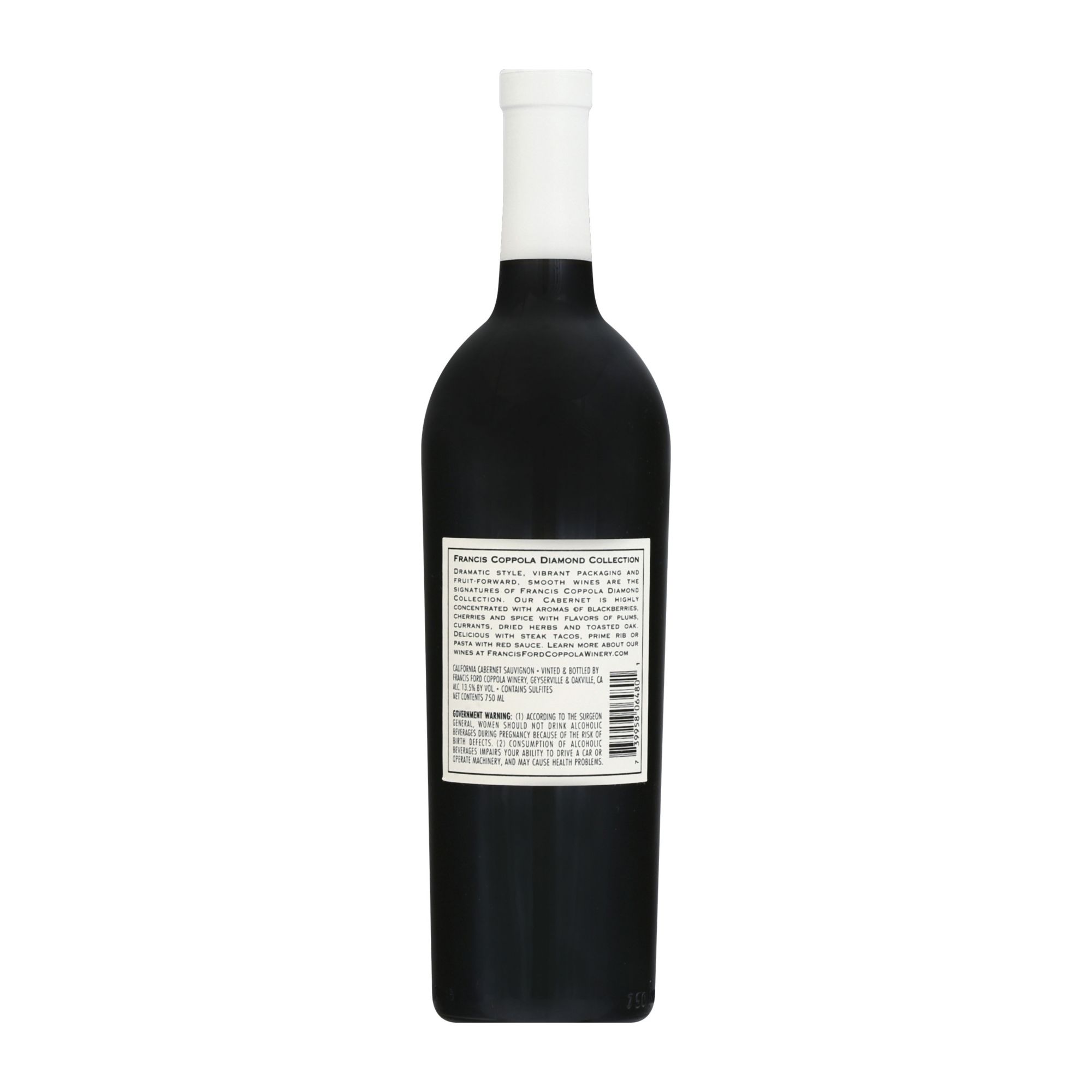 Francis Coppola Diamond Collection: Diamond Collection wines come from the best growing regions in California, and reflect Francis Coppola's belief that fine wine enhances a well-lived life. This Cabernet Sauvignon is highly concentrated with aromas of blackberries, cherries and spice with flavors of plums, currants, dried herbs and toasted oak. Delicious with steak tacos, prime rib or pasta with red sauce. Learn more about their wines at FrancisFordCoppolaWinery.com. Alc. 14.5% by Vol. 29 Vinted & bottled by Francis Ford Coppola Winery, Geyserville & Manteca, CA.