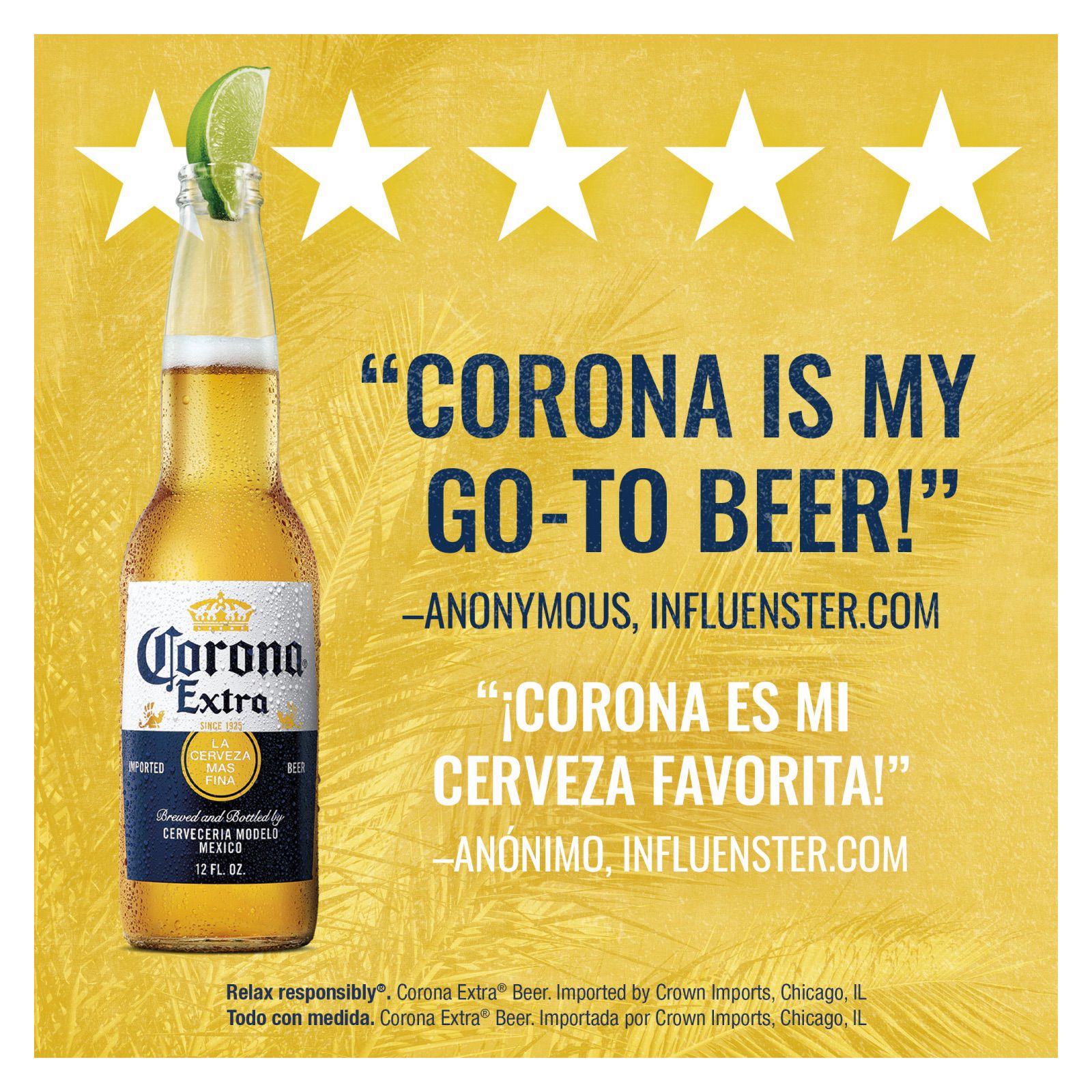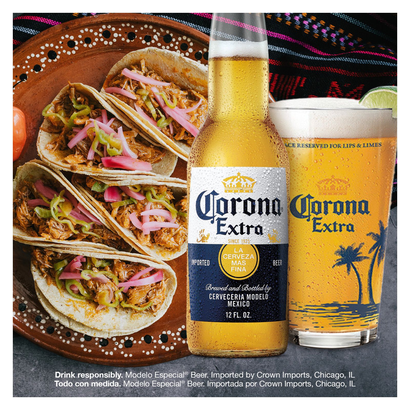 Includes 24 pack of 12 fl. oz. bottles of Corona Extra Mexican Beer