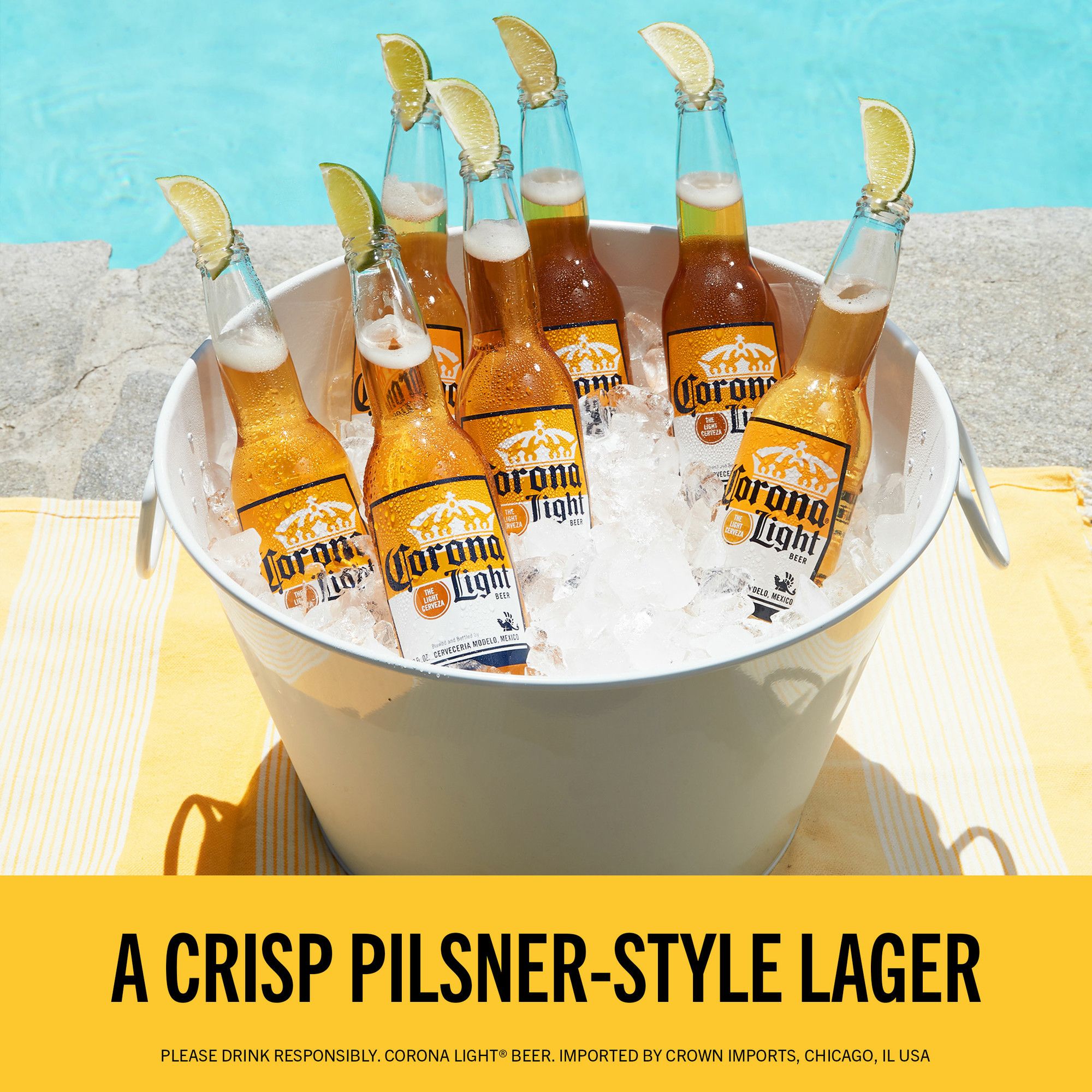 Includes 24 pack of 12 oz beer bottles of Corona Light Mexican Beer
