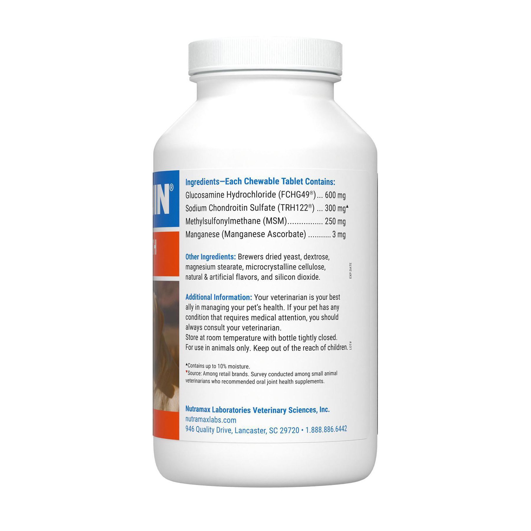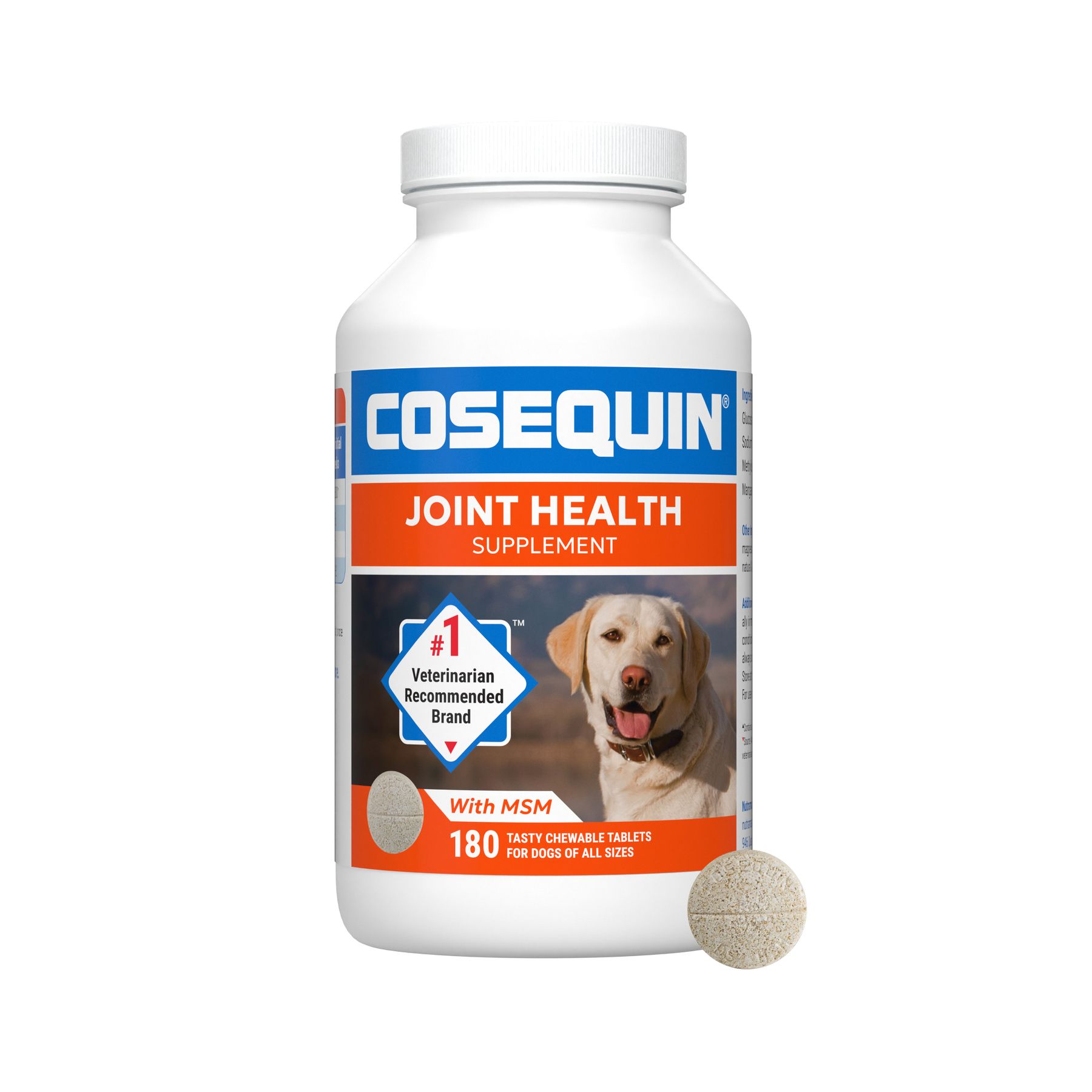 Cosequin is a scientifically researched, joint health supplement. Cosequin Maximum Strength Plus MSM contains the trademarked ingredients of Glucosamine Hydrochloride and Sodium Chondroitin Sulfate, along with Methylsulfonylmethane (MSM). This combination of ingredients helps maintain healthy cartilage. Cosequin is available in an easy-to-administer chewable tablet and is formulated for dogs of all sizes. Cosequin contains high-quality ingredients and is manufactured under strict quality standards. Cosequin joint supplements have been shown to be safe, effective, and absorbable. Manufactured in the United States with globally sourced ingredients, Cosequin is a high-quality, dog joint supplement, and is excellent for long-term use and maintenance. Cosequin is made by Nutramax Laboratories Veterinary Sciences, Inc., the #1 Veterinarian Recommended Supplement Company. For over 25 years, pet parents have chosen Cosequin to help support their dog's joint health. Cosequin is the joint health supplement brand used most by pet parents. Trust Cosequin for your dog's joint health.