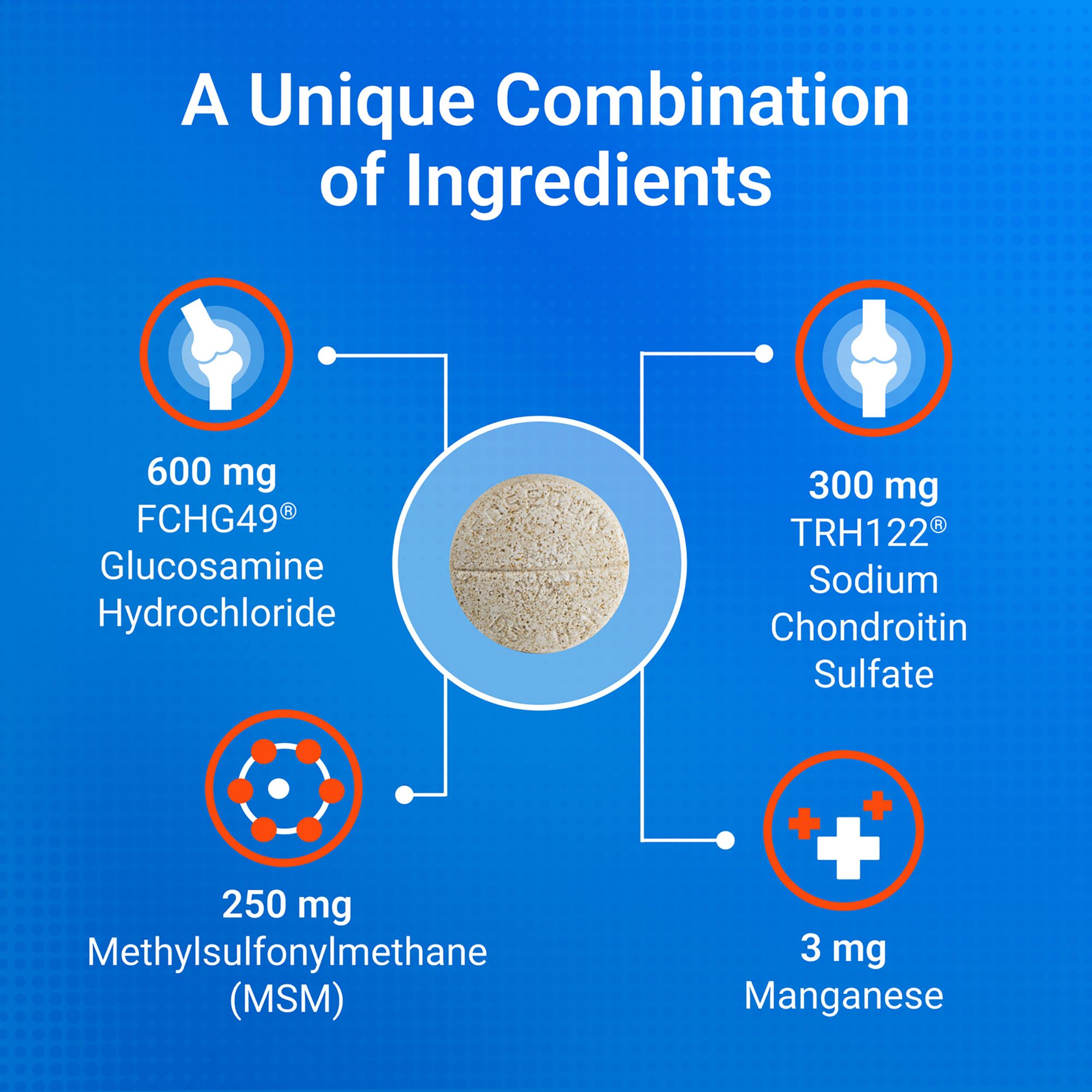 Each Tablet Contains: Glucosamine Hydrochloride - 600mg Sodium Chondroitin Sulfate - 300mg Methylsulfonylmethane (MSM) - 250mg Manganese (Manganese Ascorbate) - 3mg