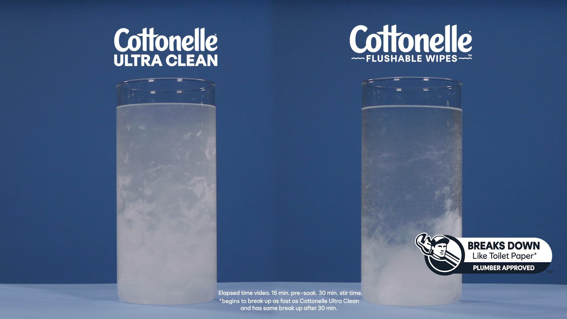 **Begins to break up as fast as Cottonelle Ultra Clean and has same break up after 30 minutes