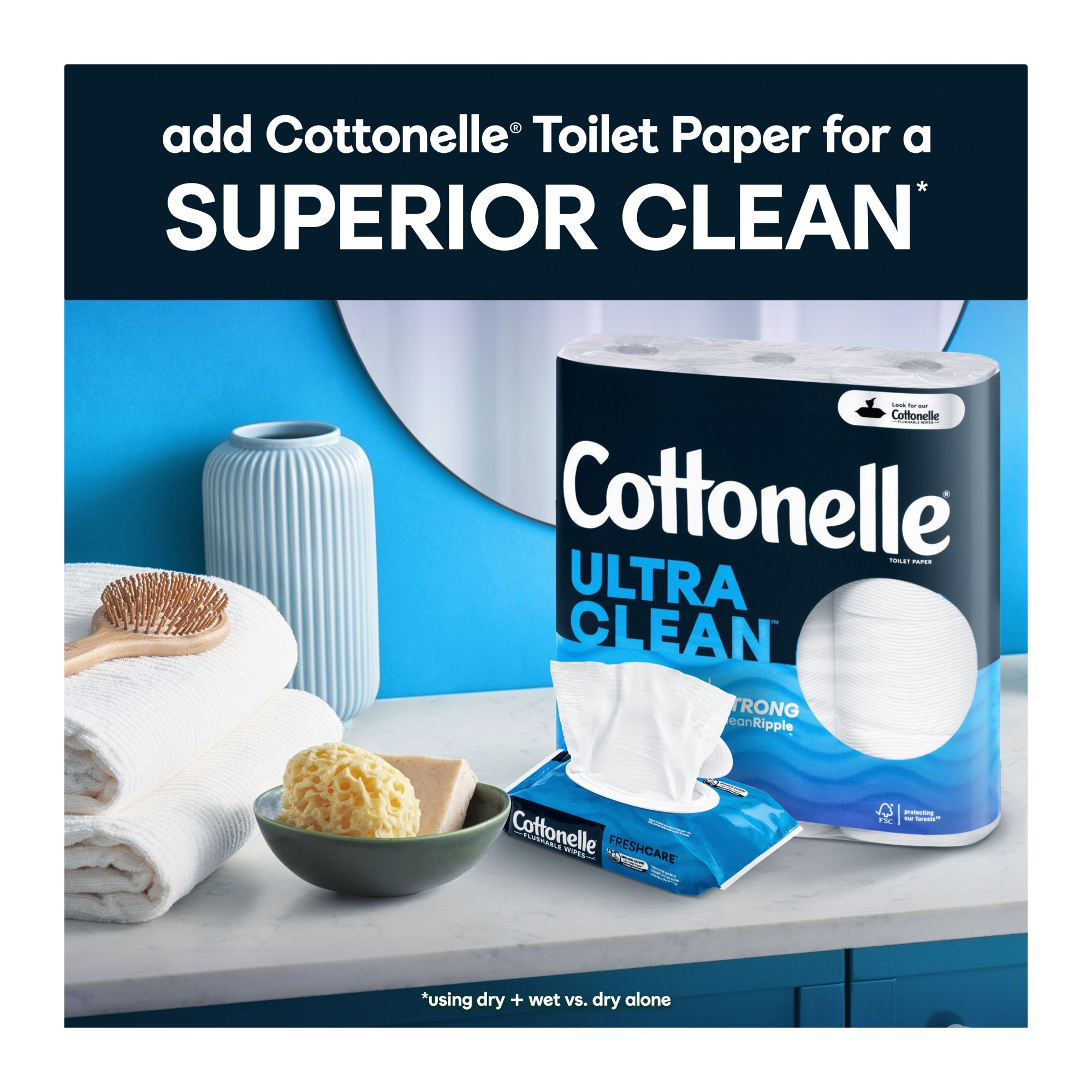 IT TAKES TWO — Flushable wipes and toilet paper are better together. Pair Cottonelle Fresh Care with Cottonelle Ultra Clean for a complete clean