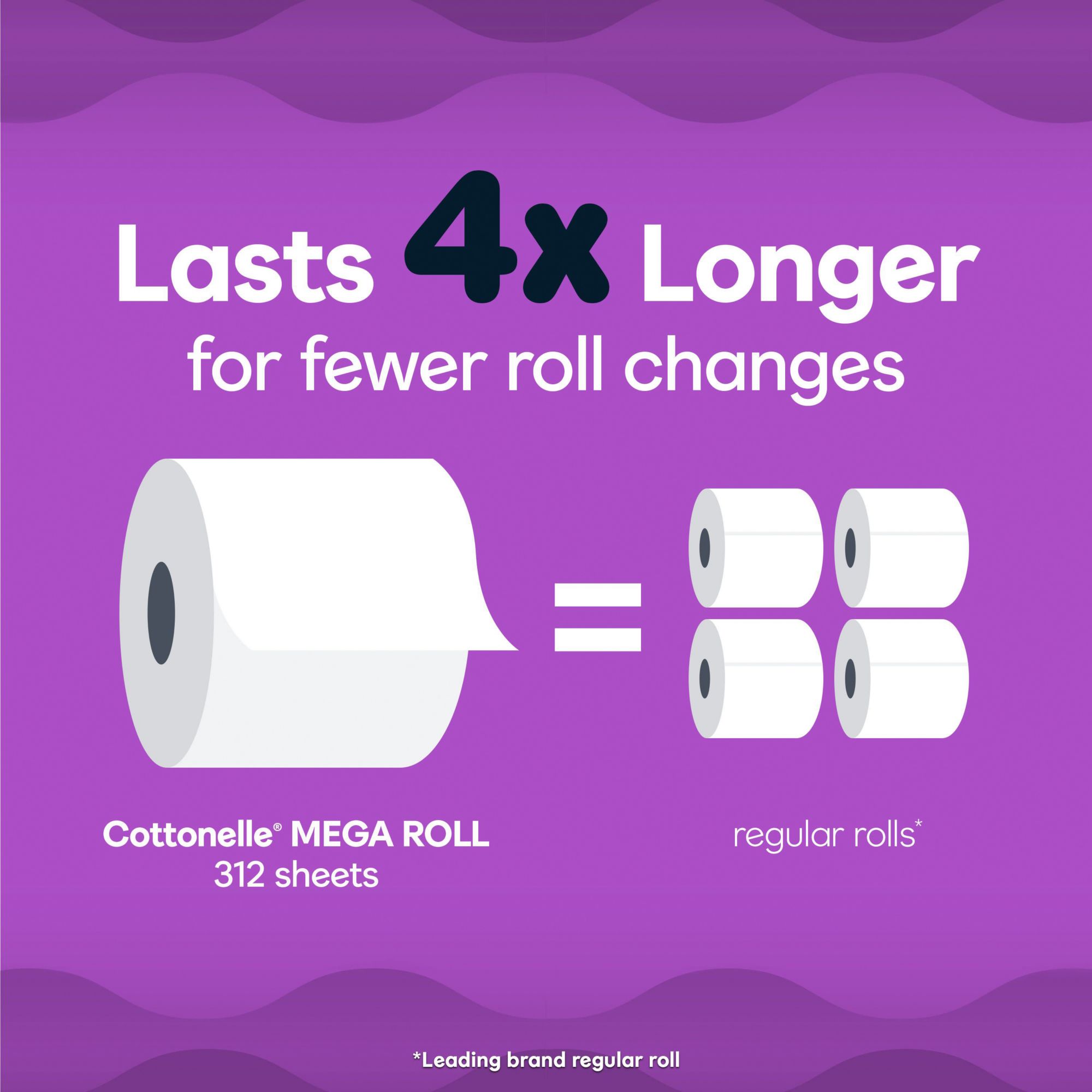 Cottonelle ultra comfort toilet paper, 36 mega rolls (268 sheets per roll) last four times longer* for fewer roll changes