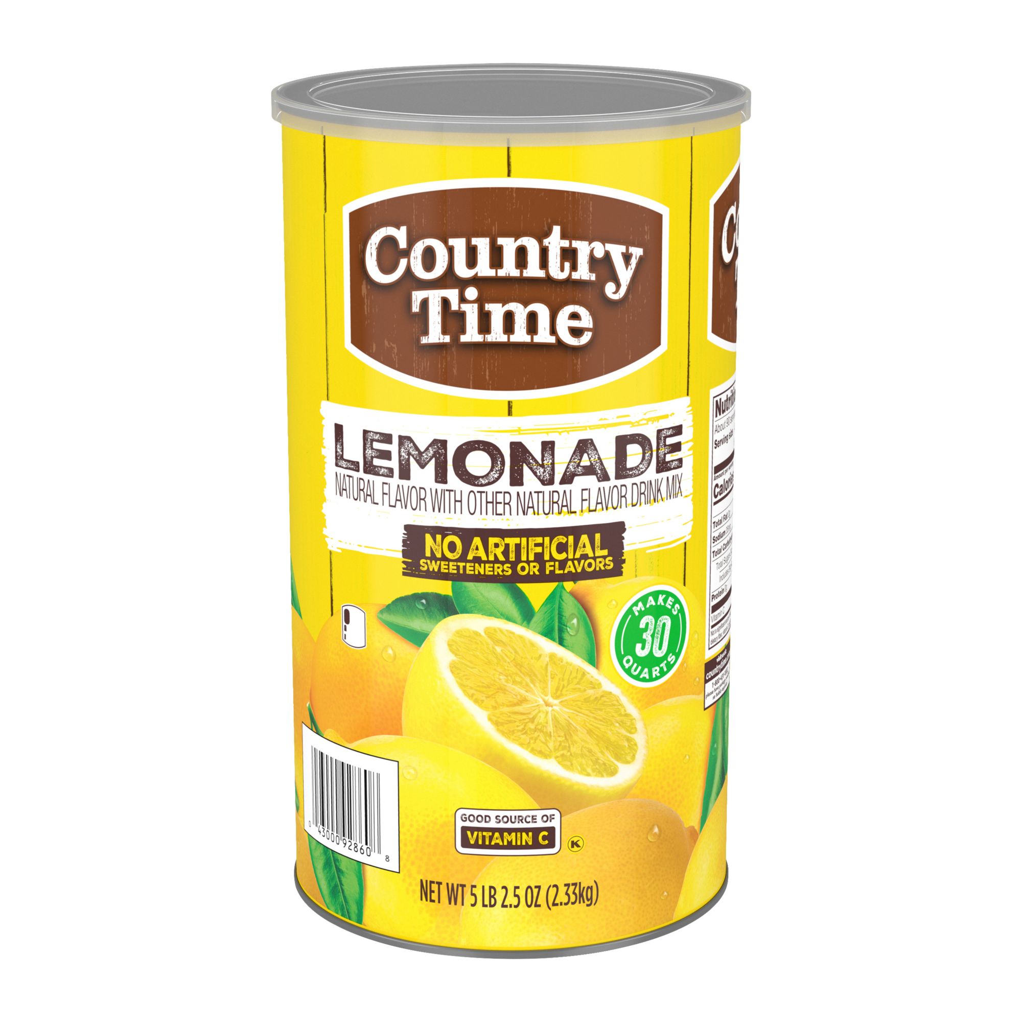 Country Time Naturally Flavored Lemonade Powdered Drink Mix combines the great taste of summer and classic lemonade in the old-fashioned refreshment of Country Time. Made with real sugar and no artificial flavors or sweeteners, Country Time Lemonade Powdered Drink Mix is the perfect choice to keep you cool on warm days. A classic since 1976, Country Time Lemonade has established itself as a beverage staple in homes across the country. From serving at your child’s first lemonade stand, to sharing a cold glass with a friend on a sunny day, this lemonade mix is the go-to option for making lasting memories with those you love. Great with grilled fare such as burgers, hot dogs and barbecue dishes, or as a tasty refreshment at your next picnic in the park, Country Time's sweet and tart flavor makes every occasion delicious. Hydrate, refresh and chill with Country Time Lemonade, an American favorite that friends and family ask for by name. This lemonade powder comes in a resealable canister to keep the product fresh, and comes with an easy-measure scoop for simple preparation. To make, scoop and pour this powdered drink mix into a plastic or glass pitcher, add water and ice, stir, and serve. Enjoy the great taste of summer with Country Time!