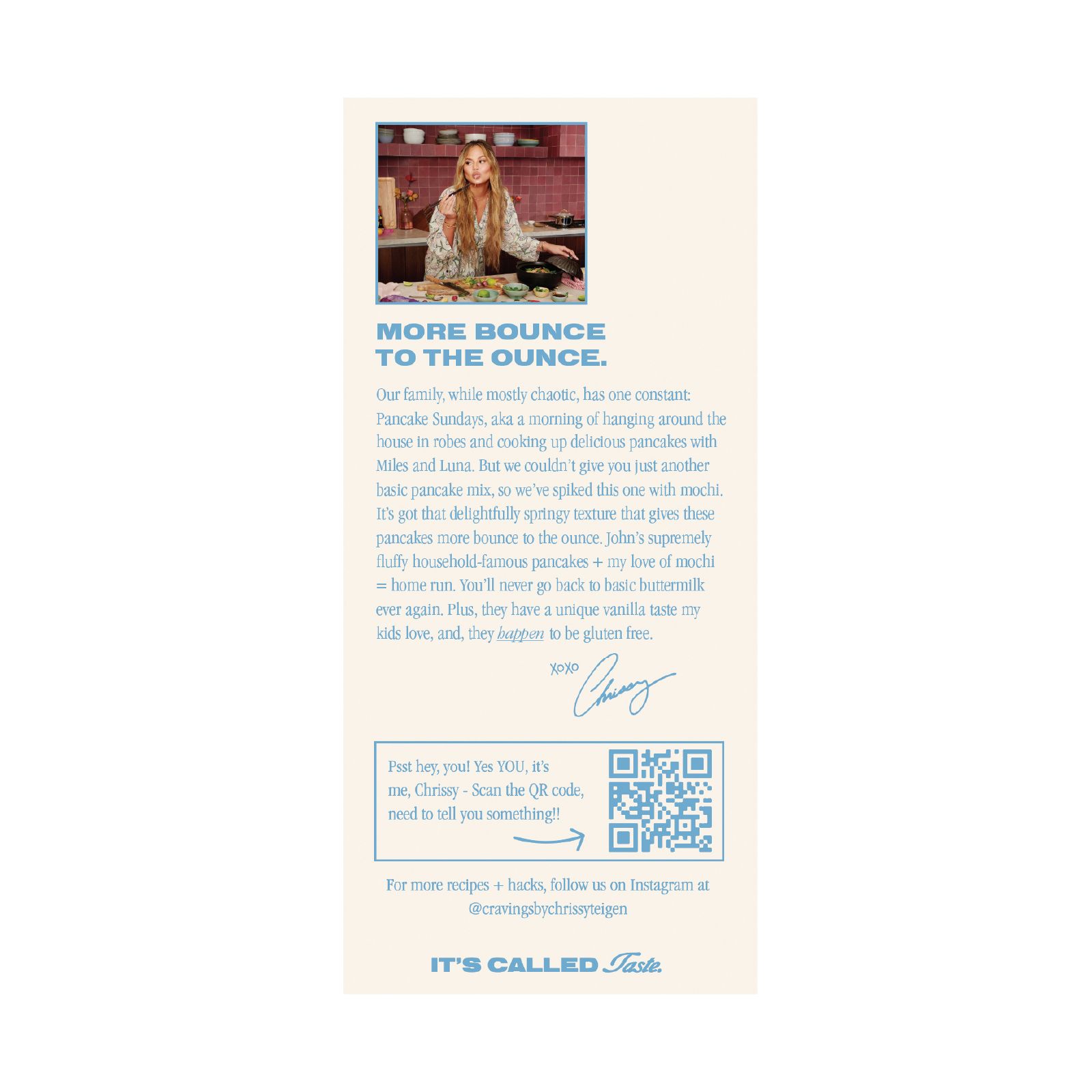 Not your average pancake mix! Inspired by John Legend’s weekly tradition of Pancake Sundays, Cravings by Chrissy Teigen combined mochi with classic buttermilk pancakes - the result is a fluffy, golden brown exterior with that signature bouncy texture and hint of vanilla flavor that mochi fans just can’t get enough of. Just add eggs, oil, and milk and you’ve got mochi magic on your hands.