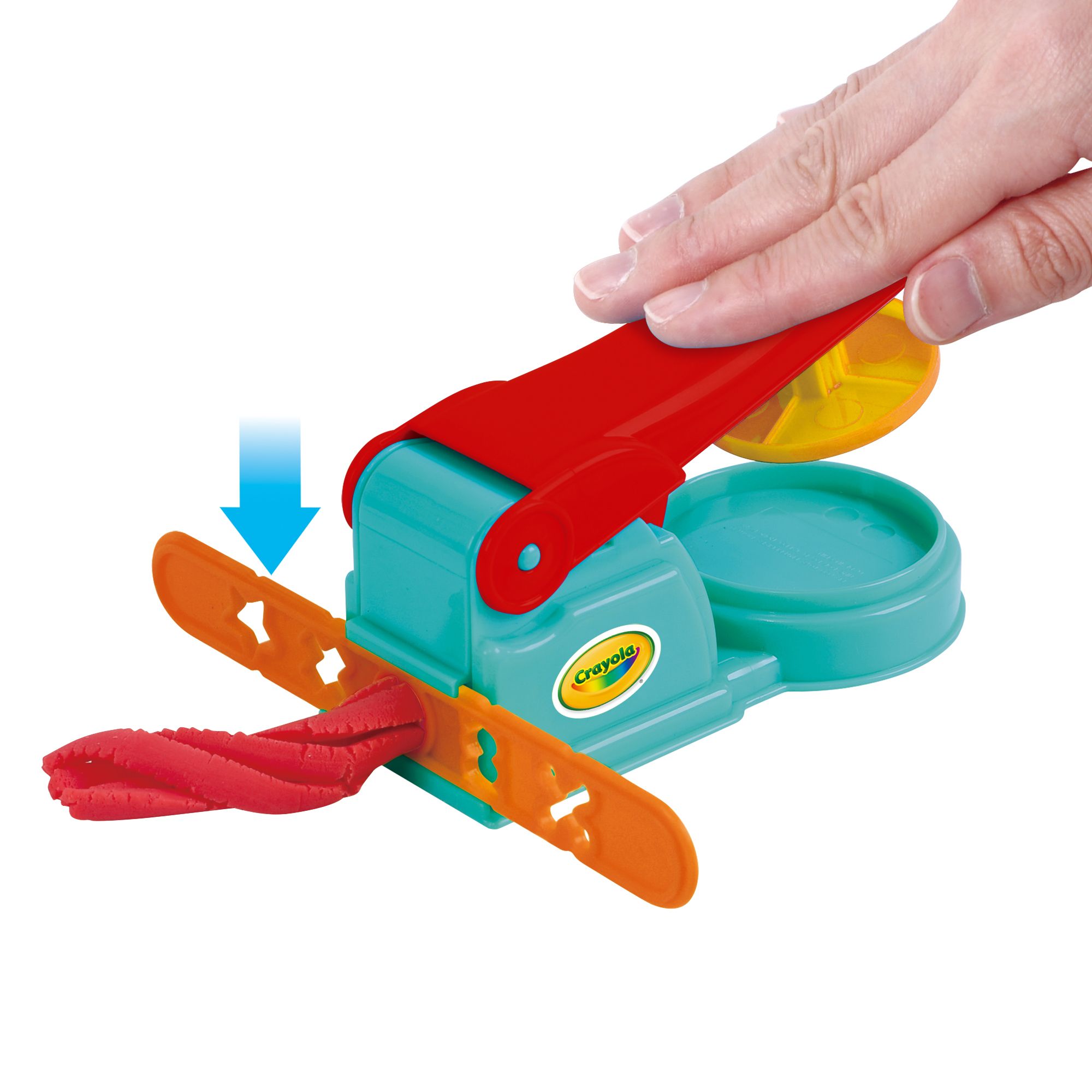 Kids can make a variety of fun, colorful shapes, and creations out of dough. This 28-piece kit including six 5-oz. tubs of assorted color (red, yellow, blue, green, pink, and white) rice-based dough, four animal cutters, molder/extruder unit, mold, two-piece mold, two extruder stencils, plunger, two-character extruders, comb, scissors, chair, chair holder, spoon, cone, dish, spatula and ice pop stick.