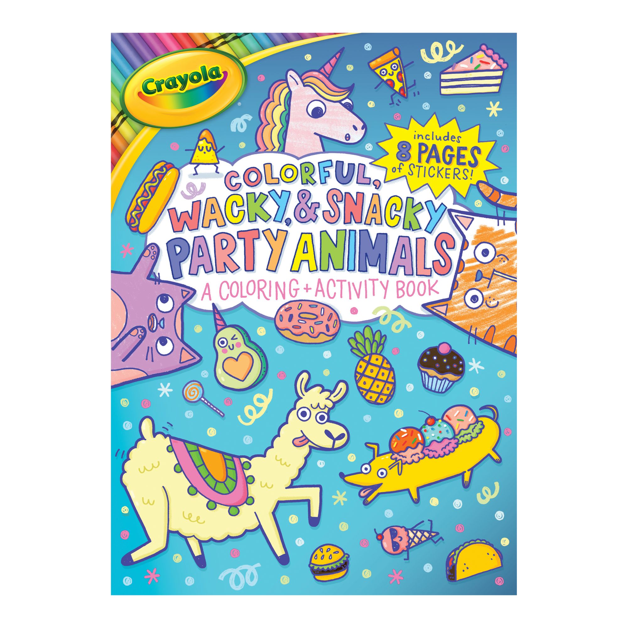Enjoy a feast of hilariously wacky and snacky coloring-and-activity fun, plus 8 sheets of awesome stickers, in this 192-page Crayola coloring book!