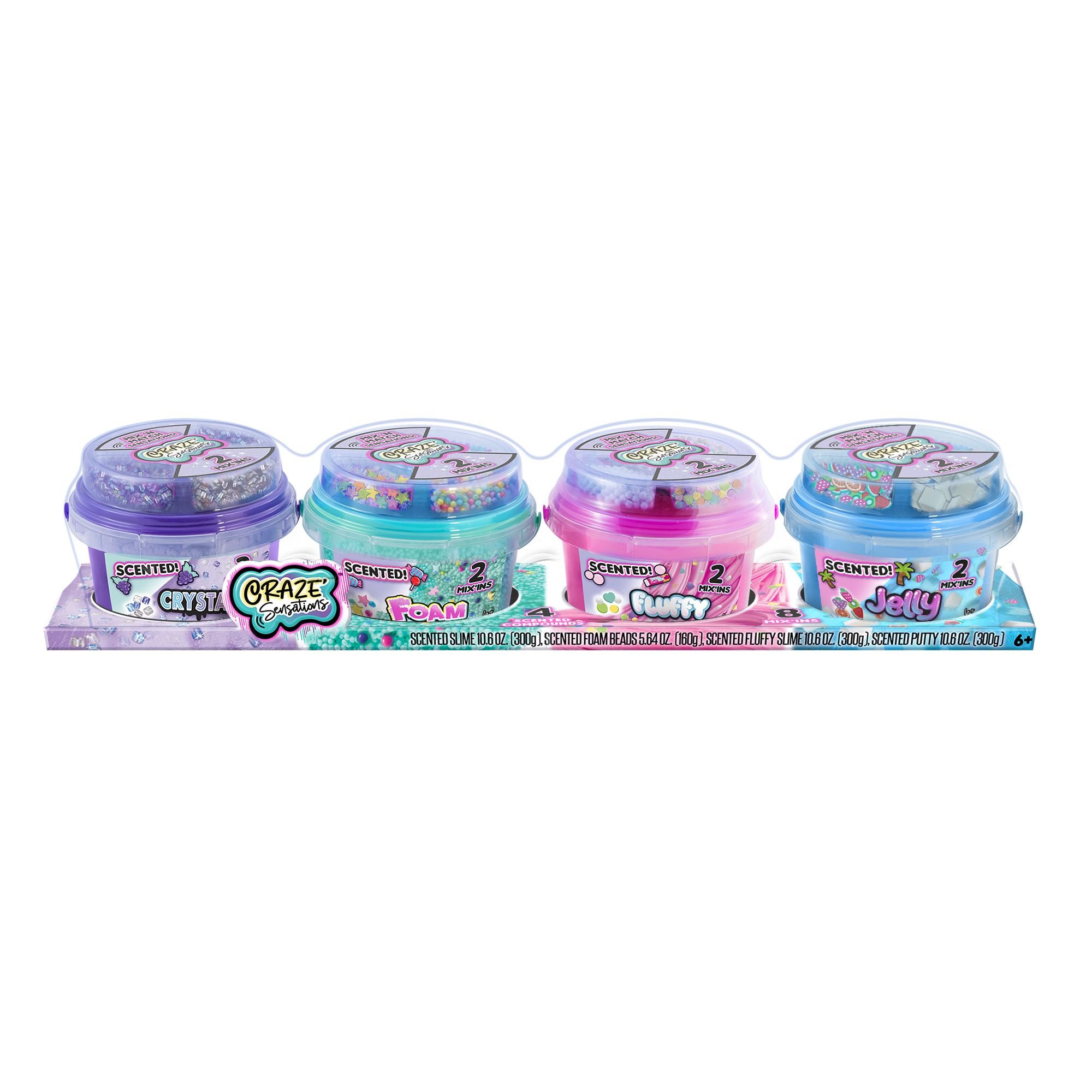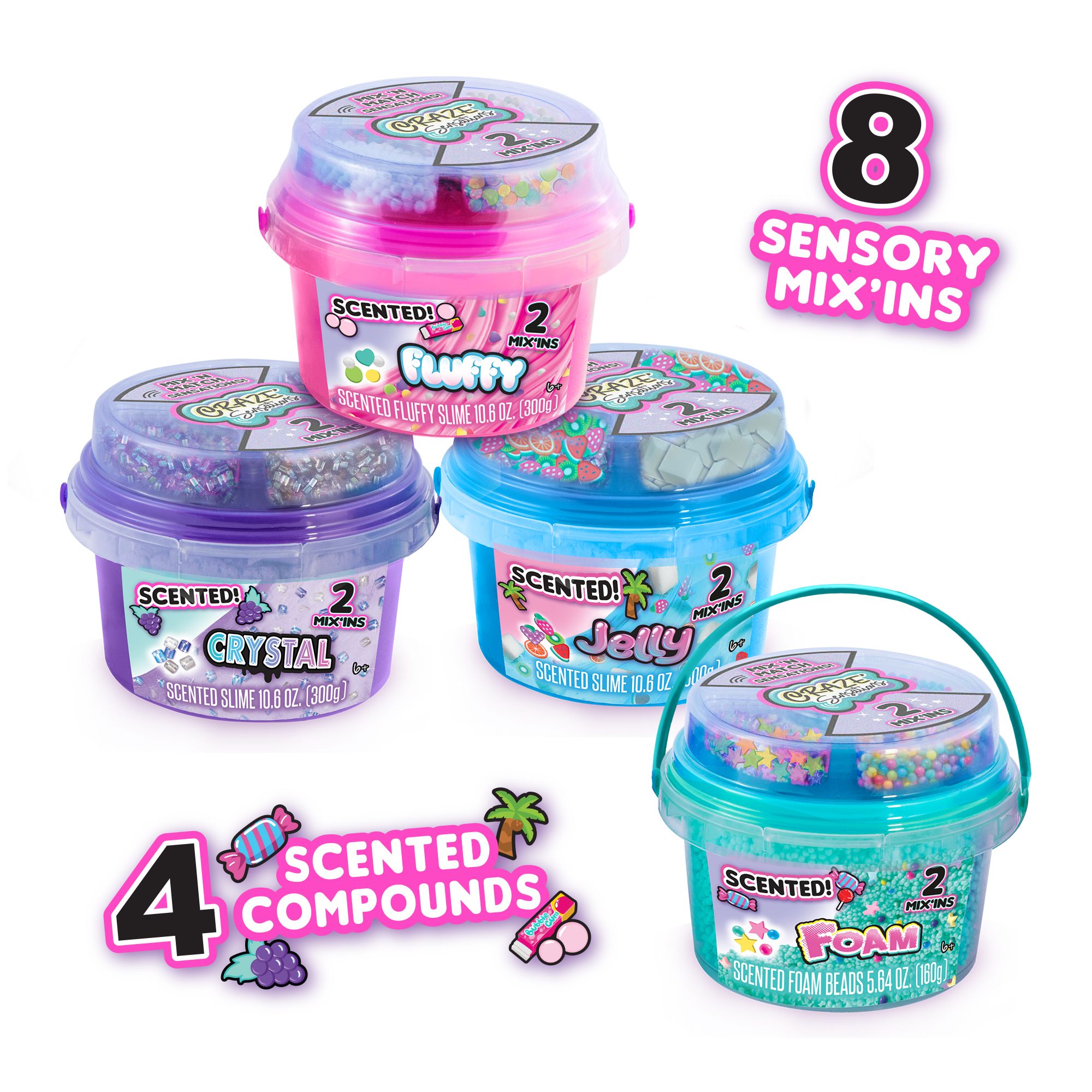 Create your own satisfying sensations with this collection of scented compounds and mix’in decorations. This combo set includes four styles of scented compounds: Fluffy, Crystal, Foam, and Jelly. Plus, each compound comes with two mix’ins for a total of eight mix’ins. Create different textures by combining the compounds with mix’ins like confetti, sponge cubes, bingsu, beads, and more. It’s the ultimate ASMR experience. Which sensation is your favorite? Have fun and relieve stress by squishing, stretching, crunching, or swirling. All the compounds come ready to play in reusable mini buckets to store and stack. Use this multi-pack as an awesome compound mix-and-match set or split it up to share with friends.