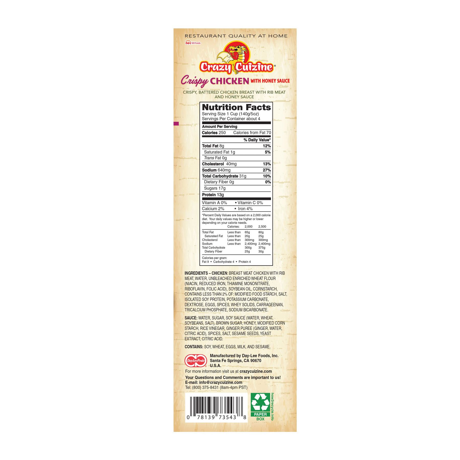 Includes crispy chicken with honey sauce, 42 oz.