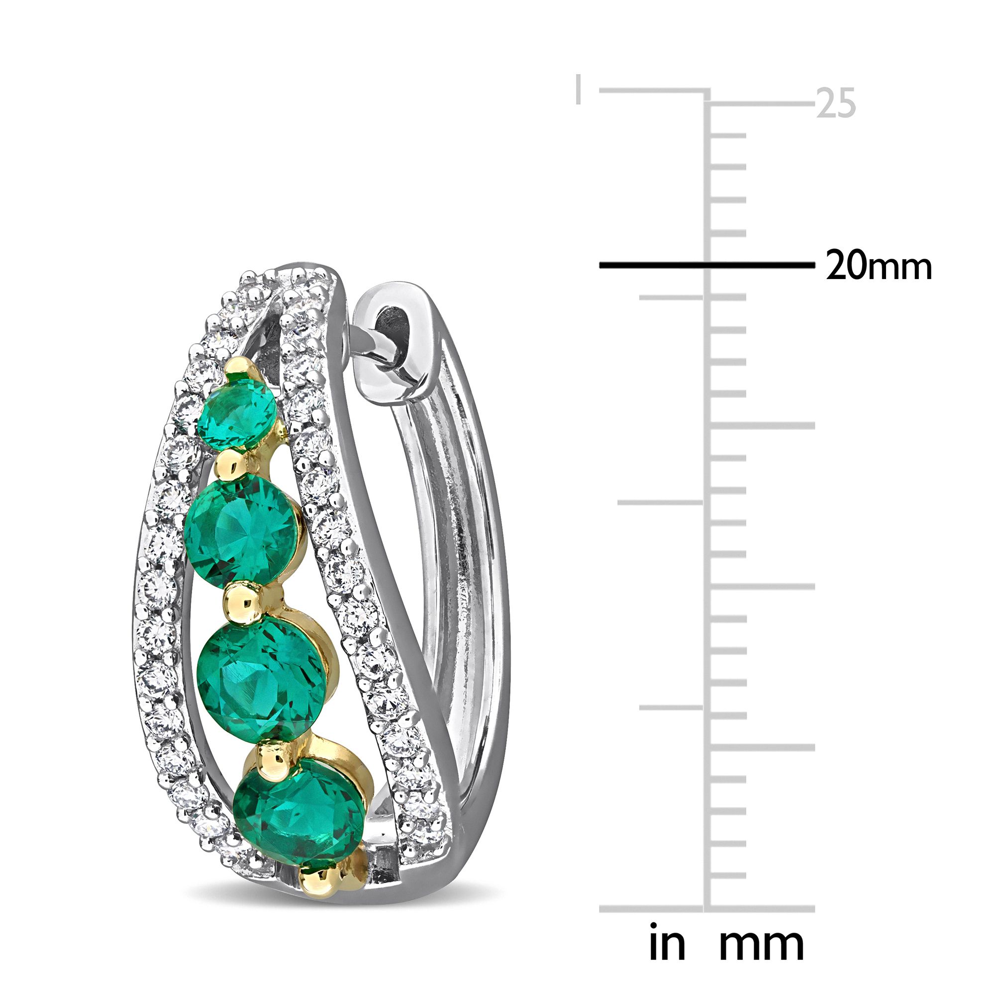 Created Emerald & .5 ct. t.w. Lab-Grown Diamond Hoop Earrings in 14k Two-Tone Gold