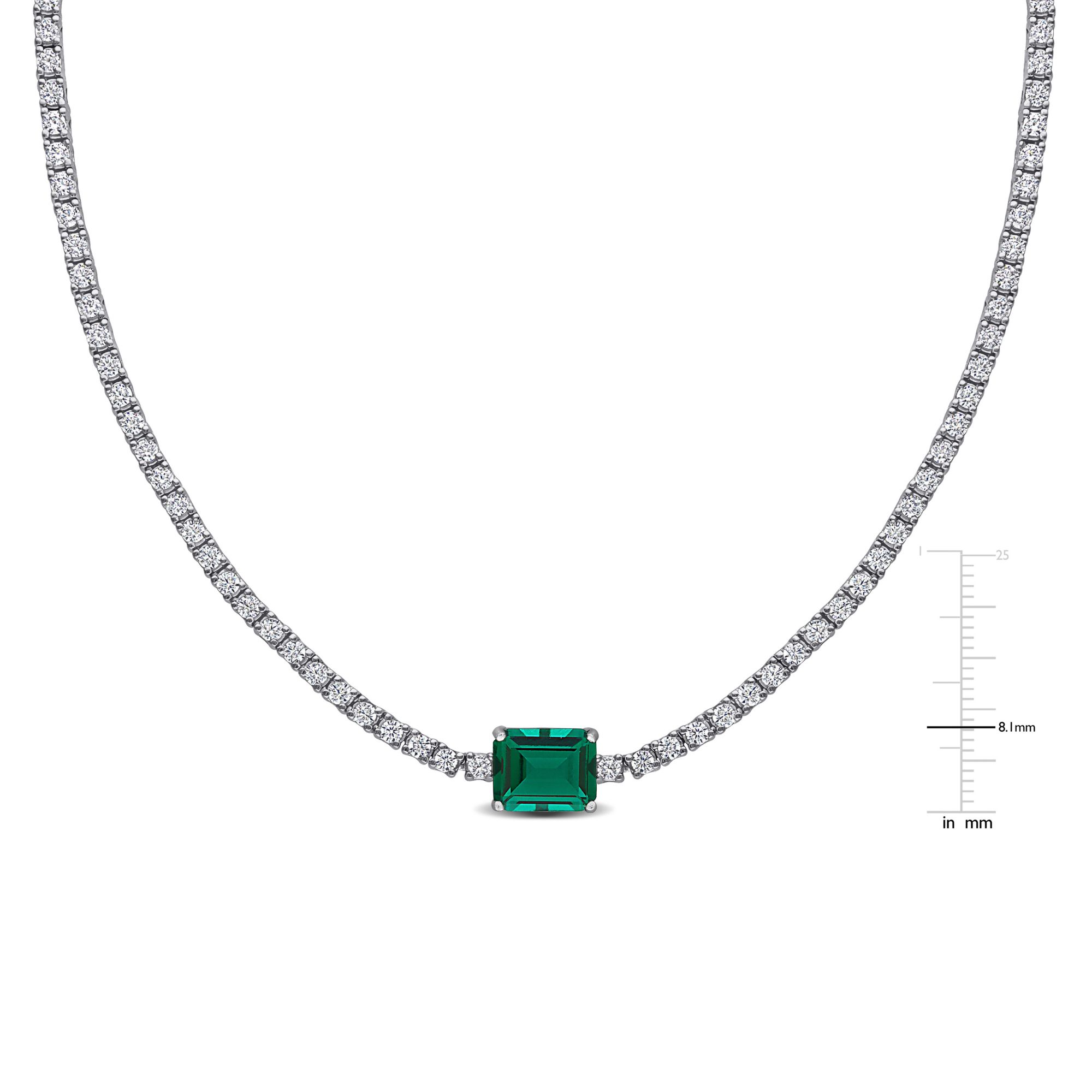 Created Emerald and White Sapphire Solitaire Tennis Necklace in Sterling Silver