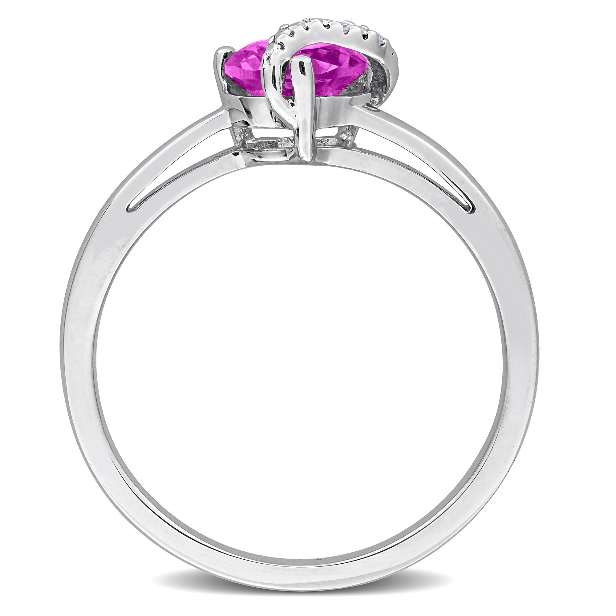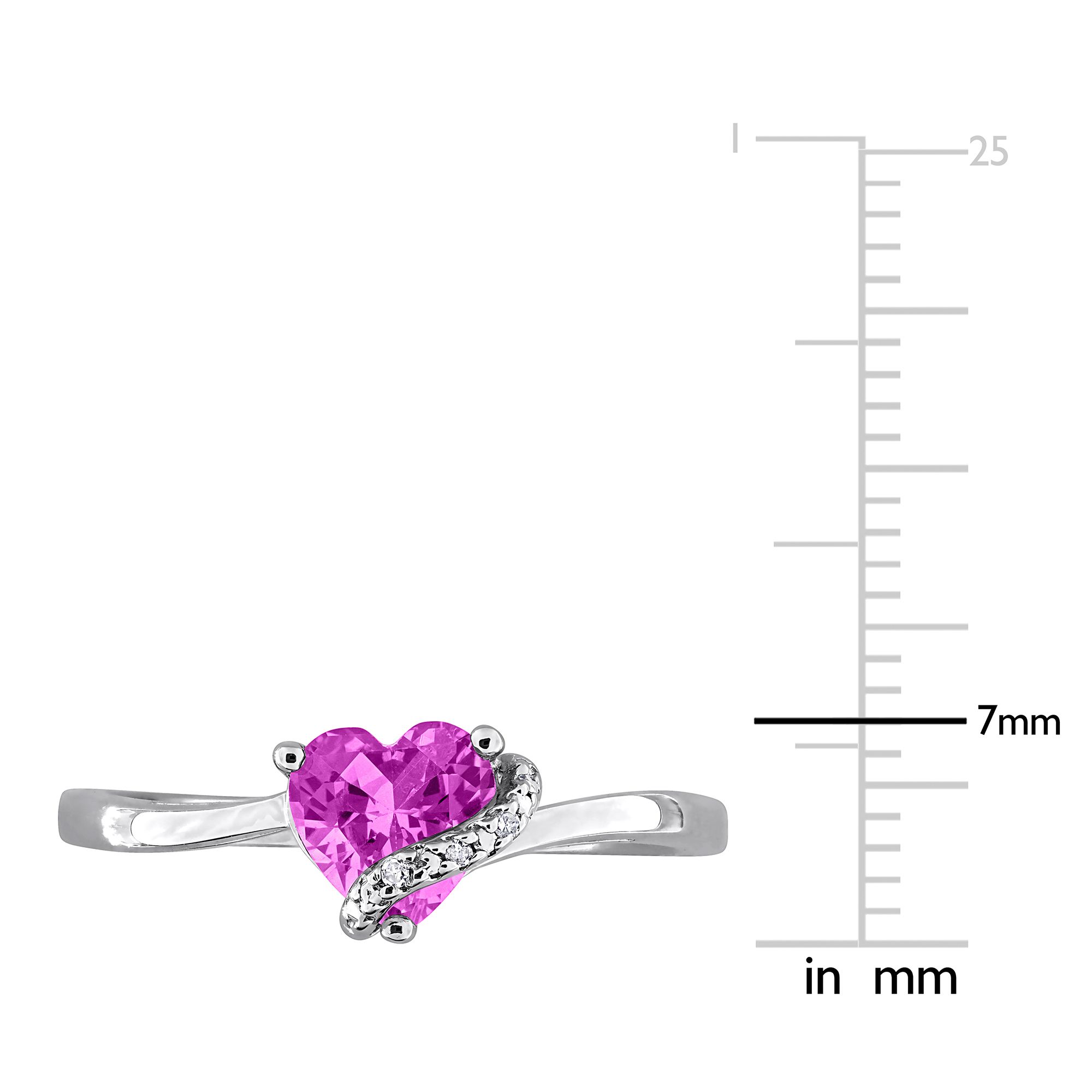 Created Pink Sapphire and Diamond Accent Heart Ring in Sterling Silver