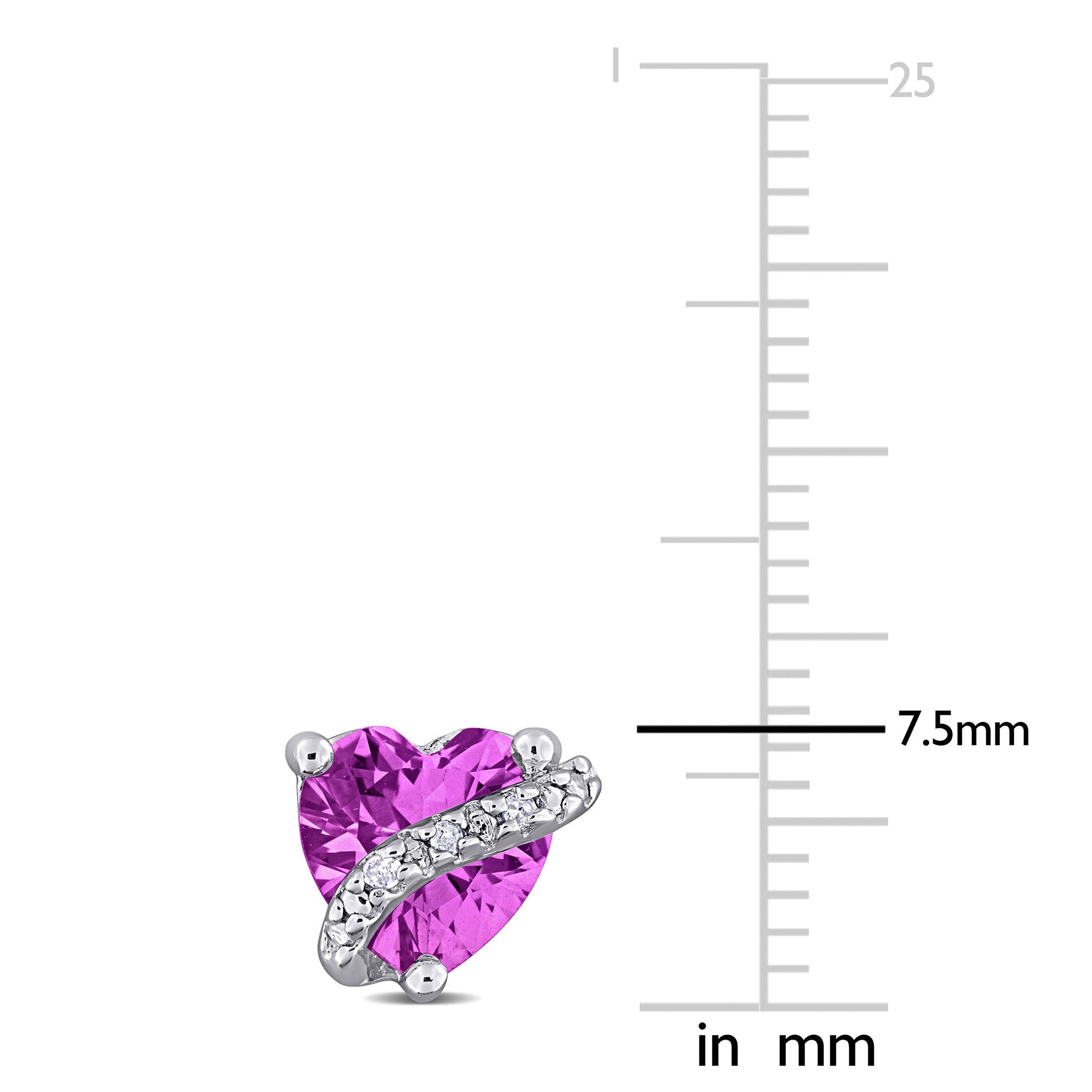 Created Pink Sapphire and Diamond Accent Heart Stud Earrings in Sterling Silver