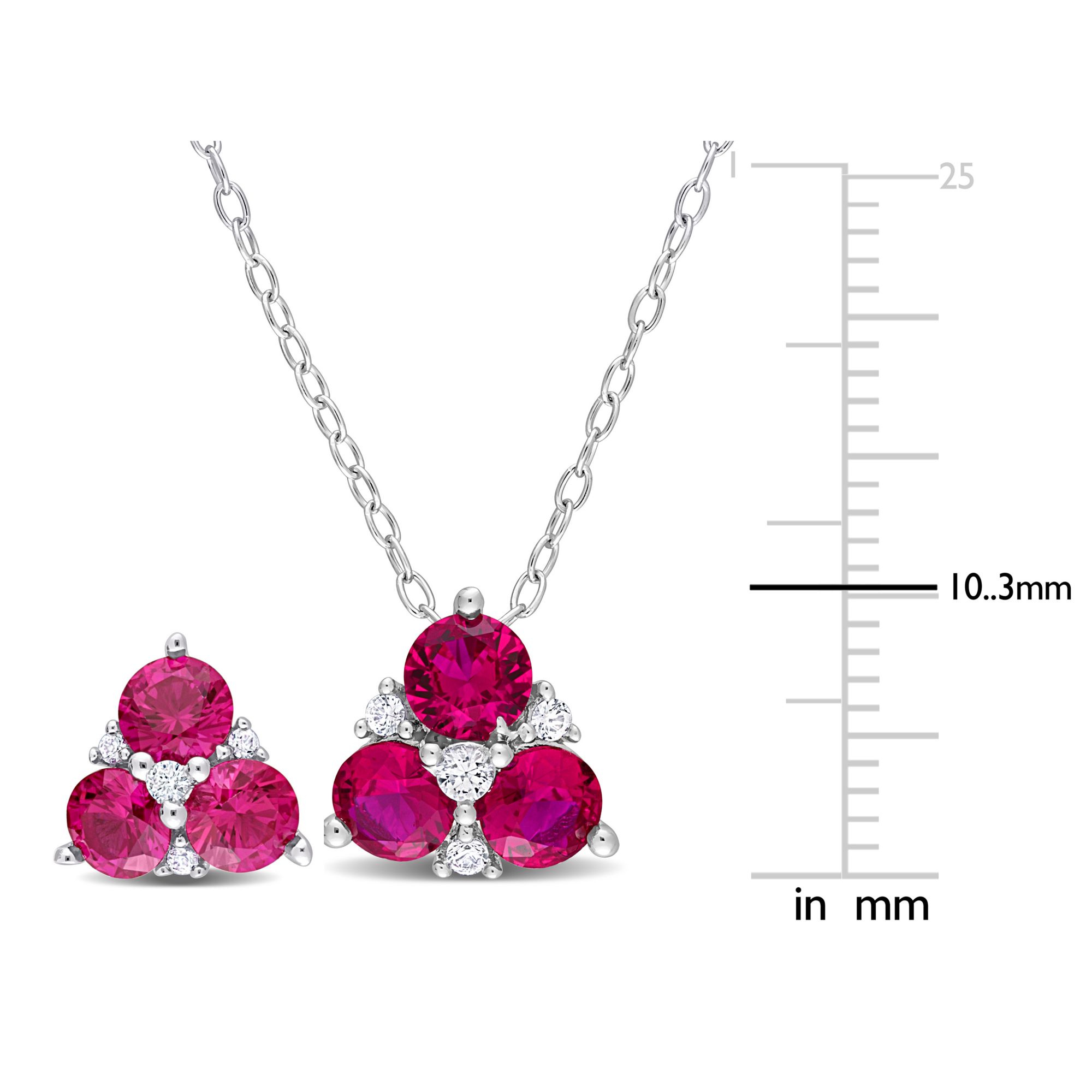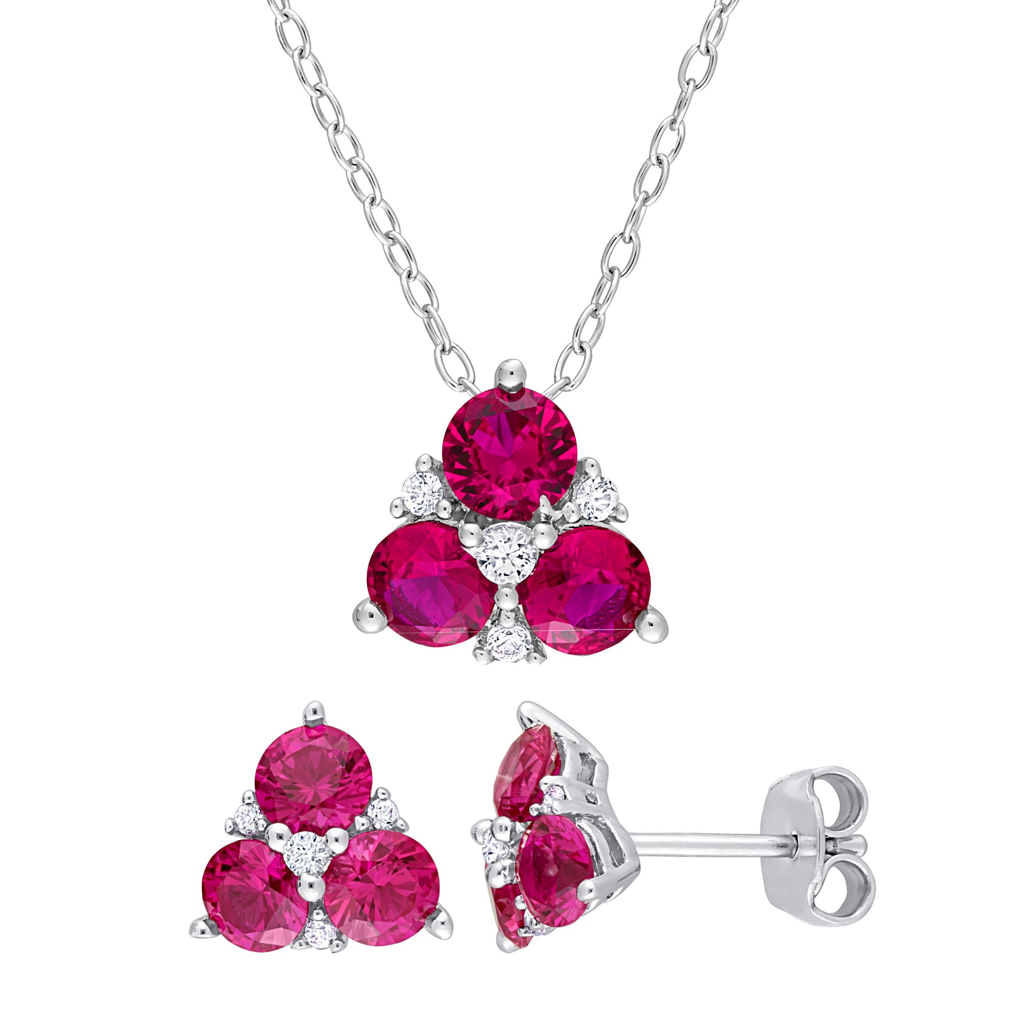Created Ruby and Created White Sapphire 3-Stone Earrings and Necklace in Sterling Silver