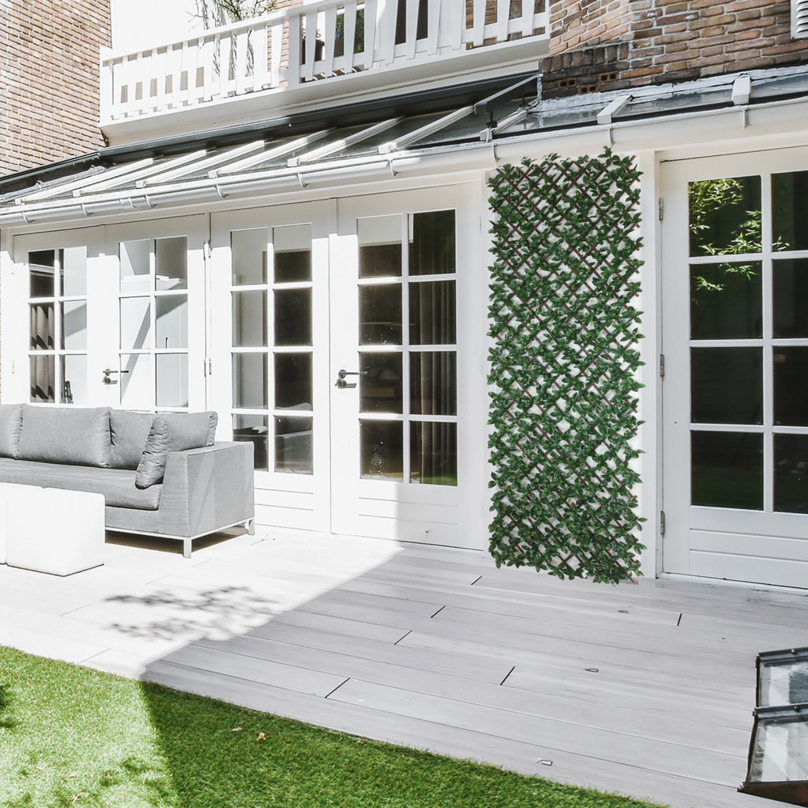 Elevate your space with Creative Surface’s Expandable PVC Trellis, offering style and privacy in one. The PVC trellises offer a solution to traditional wooden trelliss – sturdy, long-lasting, lightweight, and easy to manipulate, they create a clean and chic look. Their expandable design makes them extremely versatile and easily cover a maximum area of 18” x 90". Adorned with stunning, green leaves bursting with vibrant tones, they will enliven any patio, deck, balcony, or event space, whether indoors or outdoors. A perfect solution for both privacy and decor, Creative Surfaces trellises are backed by their 5-year warranty, ensuring enjoyment for years to come.