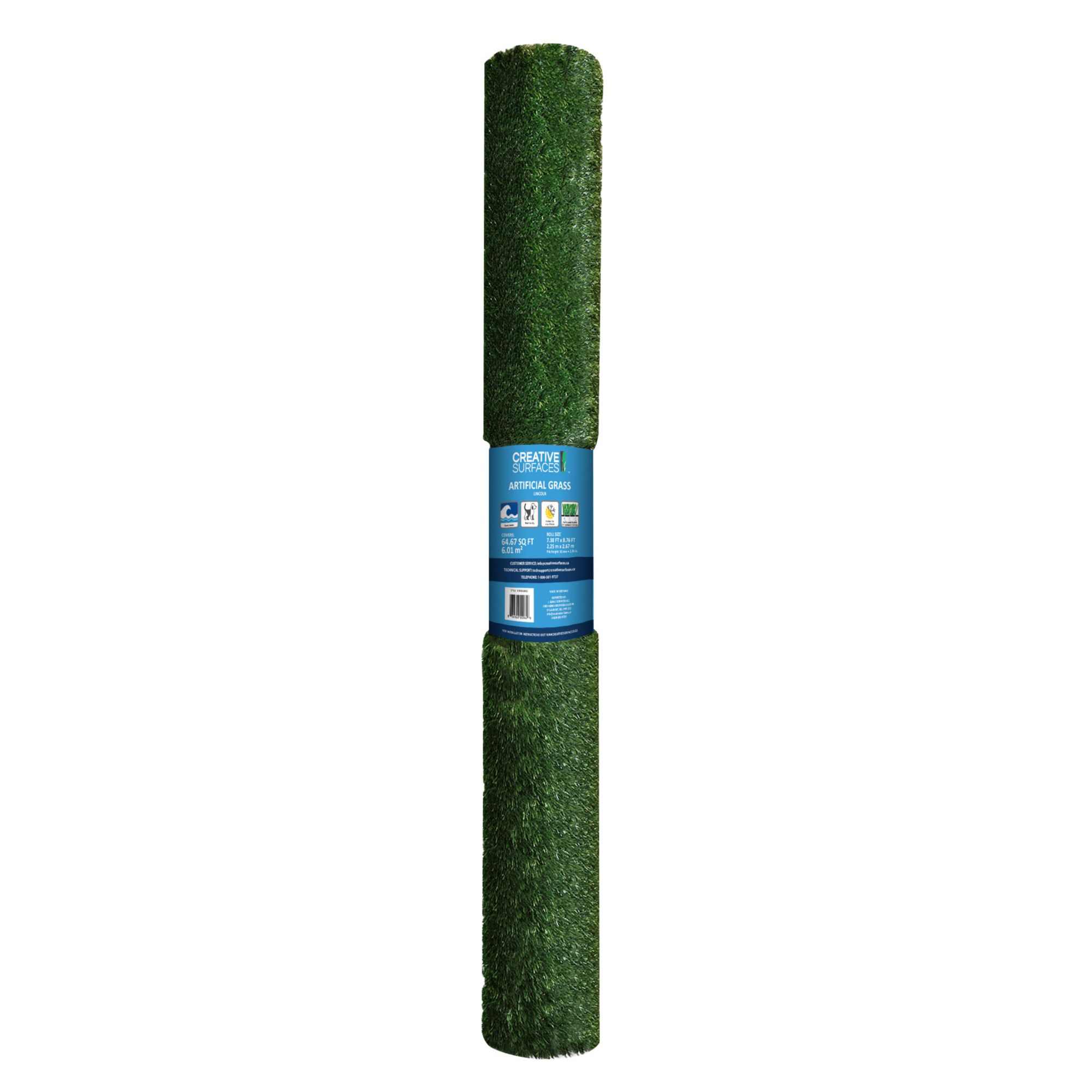 Tired of mowing, watering, or fertilizing your lawn? Creating the ideal outdoor setting is simple with Creative Surfaces Lincoln artificial grass. Perfect for lawns, tailgating, camping, or wherever life takes you, Lincoln artificial grass can liven up any space. Pet-safe and eco-friendly, this grass saves you from the headache of tiresome lawn maintenance and leaves you with a bright green and easy-to-clean lawn. Lincoln artificial grass has a latex backer that gives you excellent drainage and leaves you with grass that is dry and odor-free. The C-shaped blades are resistant to harsh matting, and the emerald and olive yarn provide grass that is green and vibrant. Lincoln grass is climate-resistant and UV-protected, ensuring it can withstand sunny summer and cold winter climates. Lincoln artificial grass is also backed up by a 10-year residential warranty. Creative Surfaces Lincoln artificial grass is easy to install and will help to create a gorgeous outdoor setting that your family, friends, and pets can enjoy for years to come.