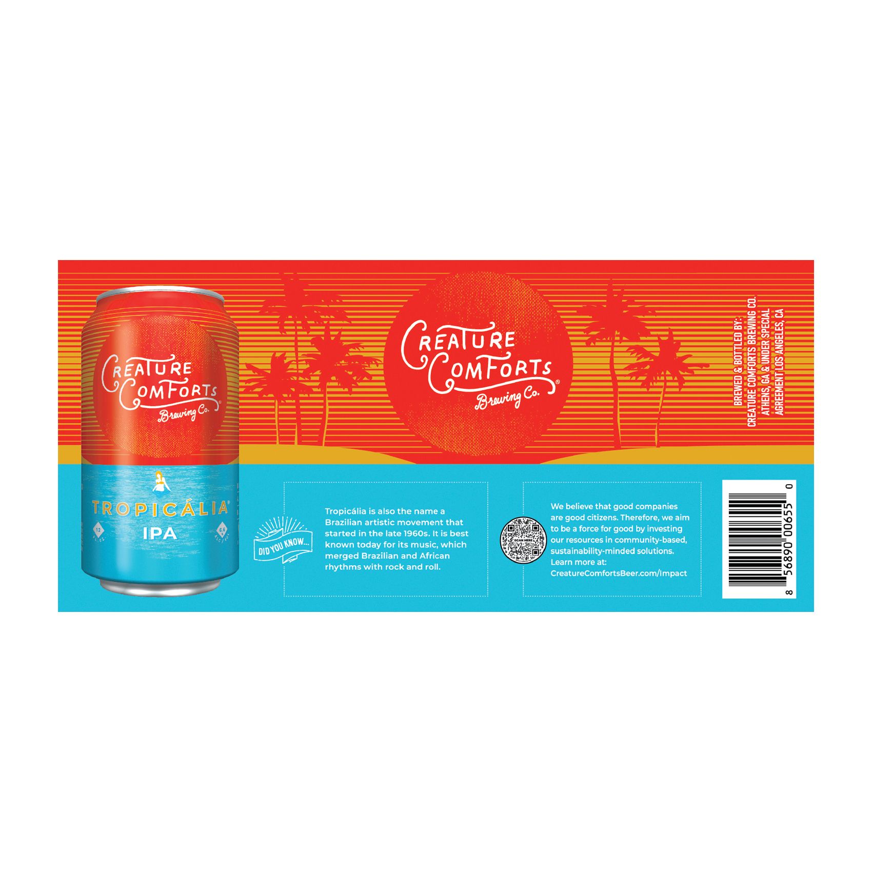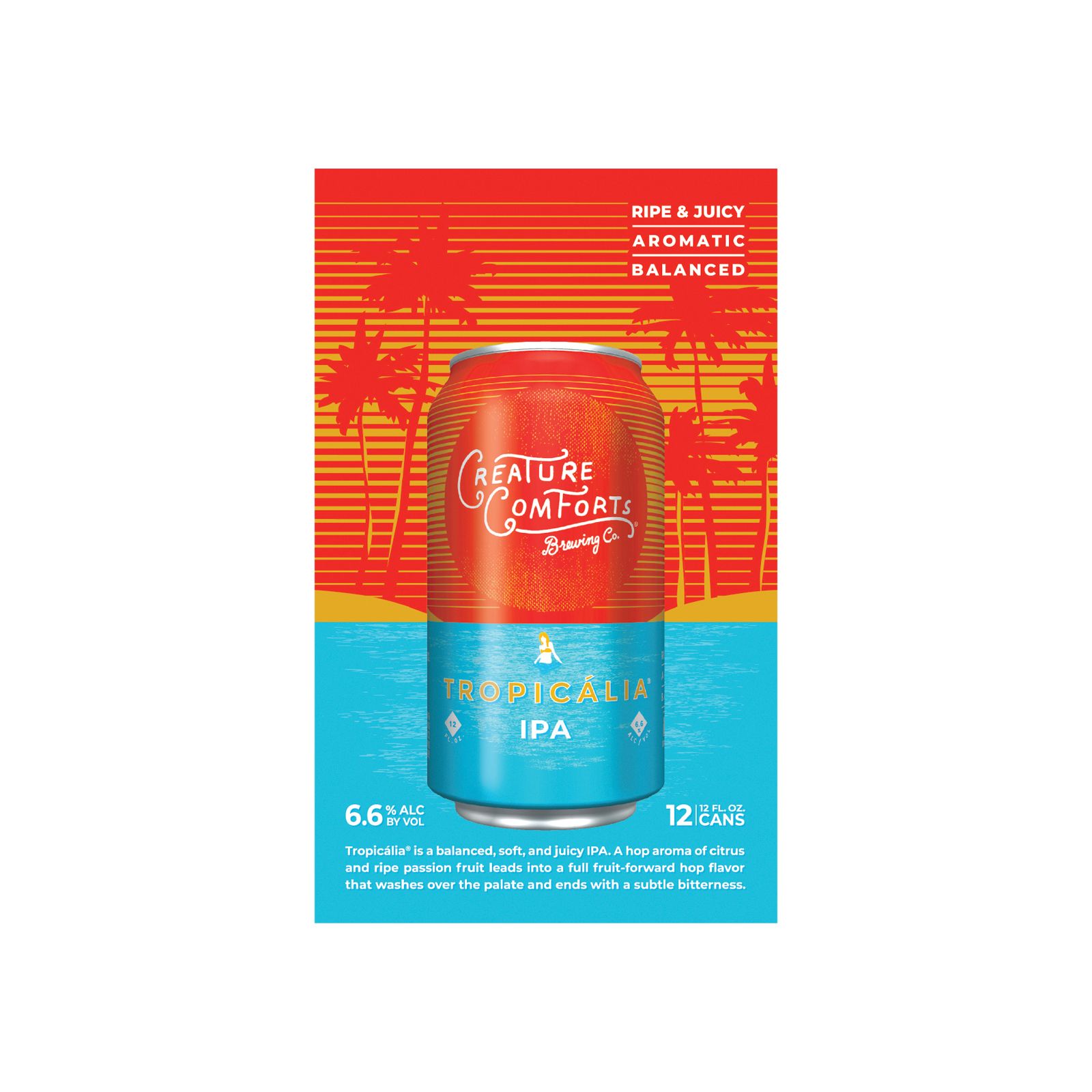 Tropicalia is a balanced, soft, and juicy IPA. A hop aroma of citrus and ripe passion fruit leads into a full, fruit-forward hop flavor that washes over the palate, and ends with a subtle bitterness.