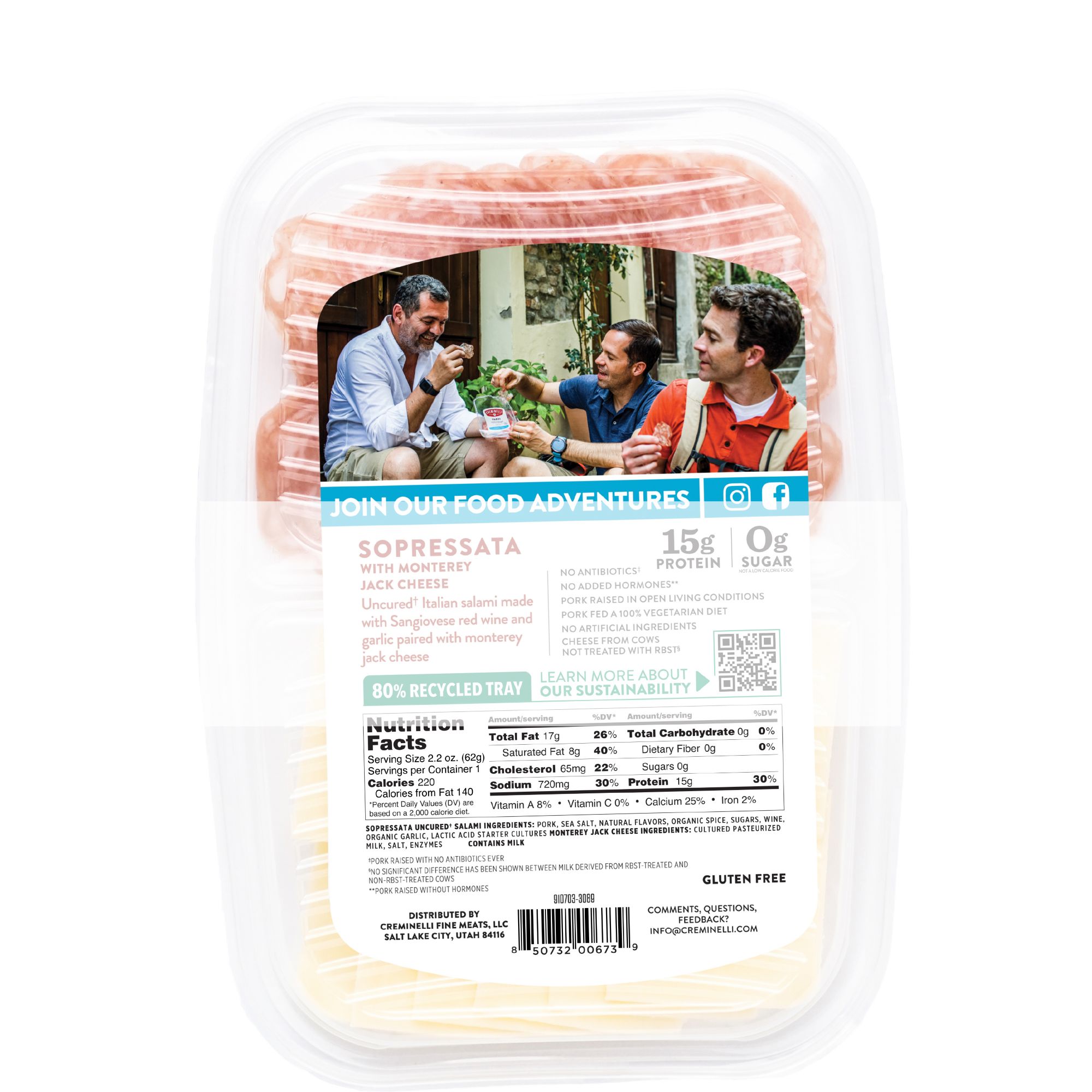 Creminelli Sliced Sopressata & Monterey Jack Snack Packs, 3 pk./2.2 oz.