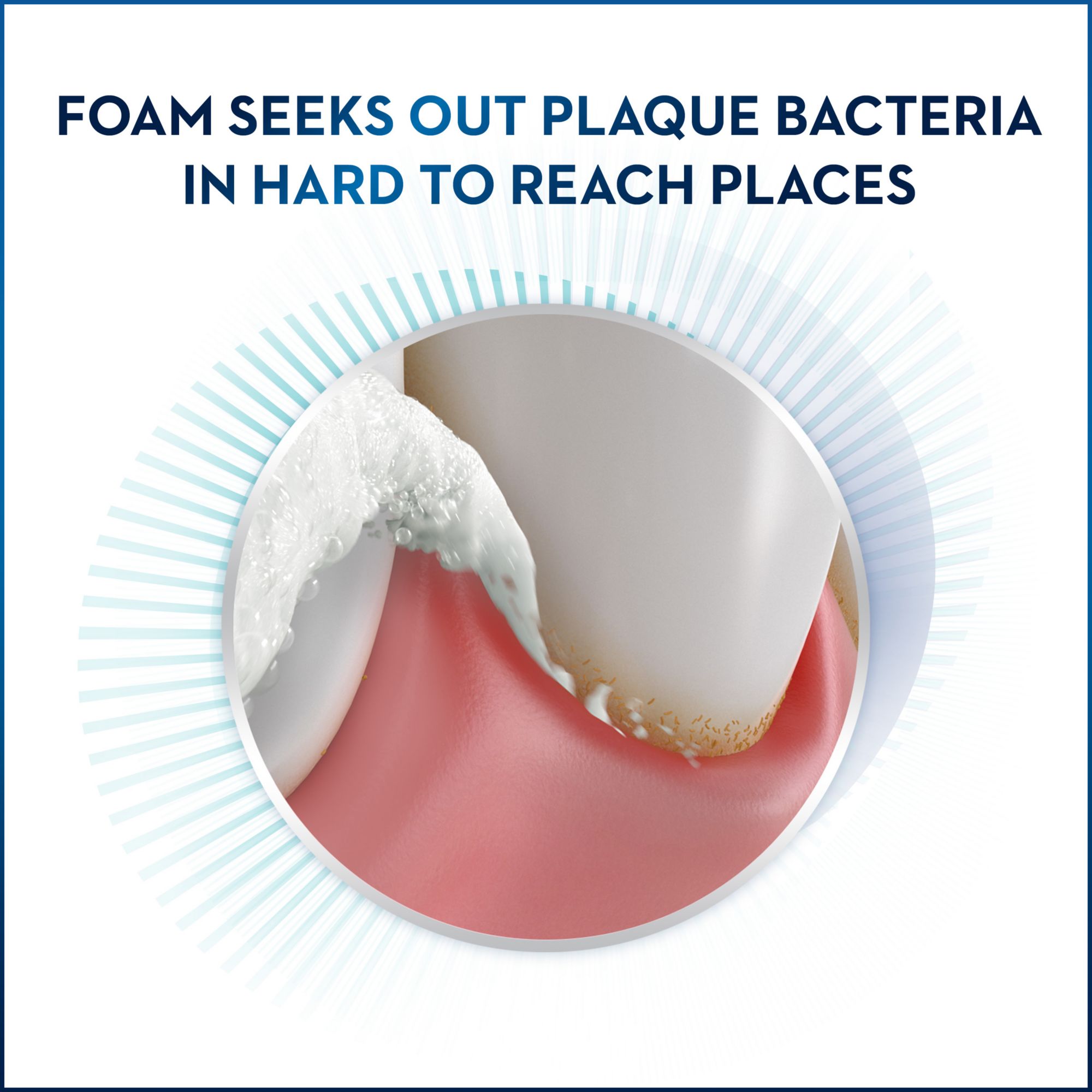 There are millions of harmful plaque bacteria that can lurk around the gum line causing gingivitis. Crest Gum Detoxify Deep Clean Toothpaste has an activated foam formula that penetrates hard to reach places to neutralize harmful plaque bacteria even around the gum line, for clinically proven healthier gums. It is also formulated to cool gums during and after brushing for a refreshing clean. Because if you’re not taking care of your gums, you’re not really taking care of your mouth.