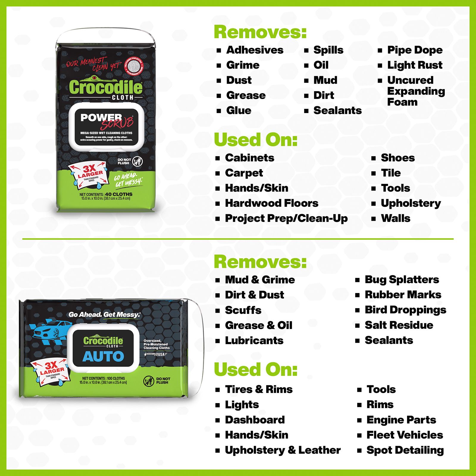 Crocodile Cloth Variety Pack, 100 Auto Wipes + 40 PowerSCRUB Wipes