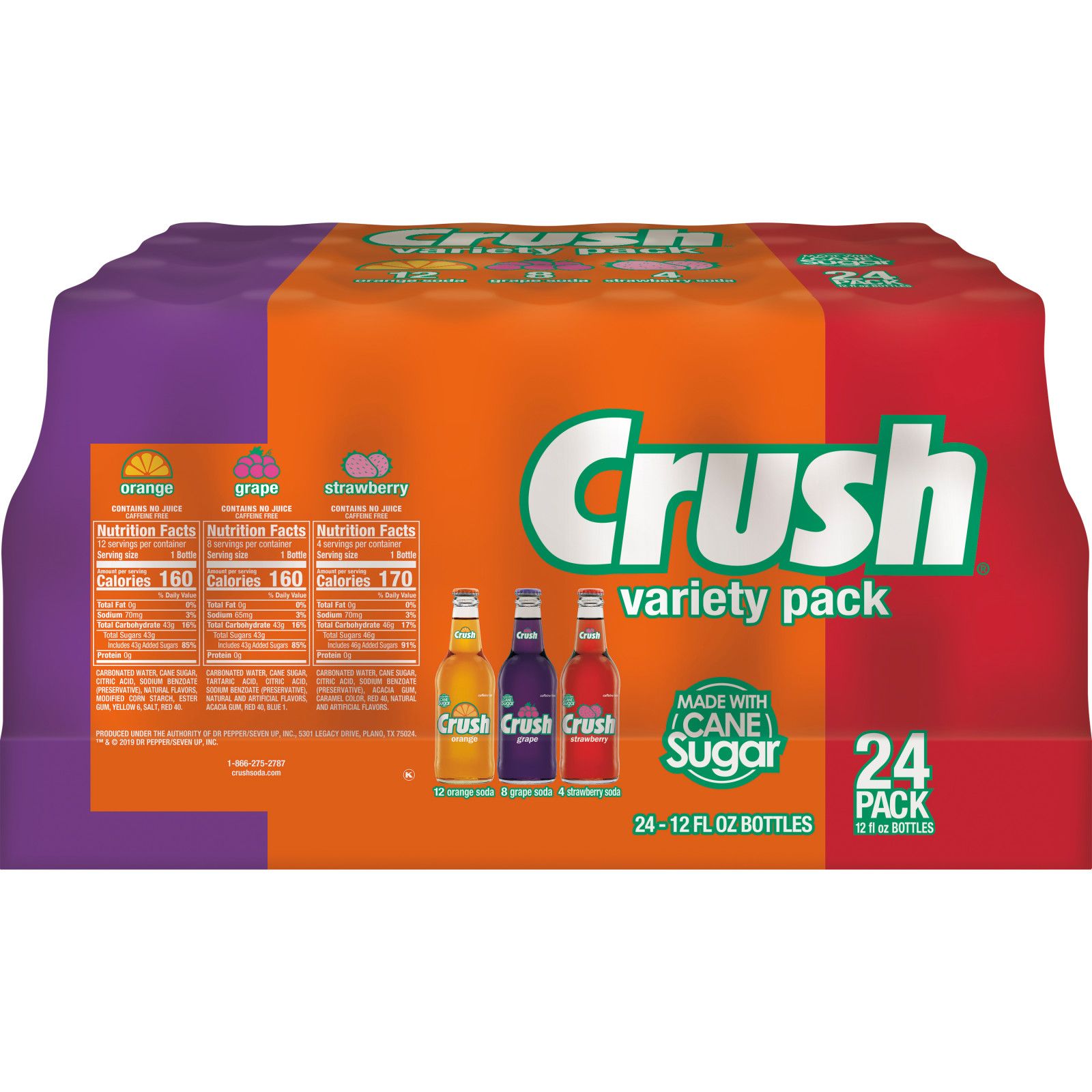 Crush offers an exciting rush of flavor and fun in every sip. As the original orange soda, Crush has a long history of delighting consumer. Included in this awesome variety pack are crowd-pleasing orange, cream soda, and strawberry!