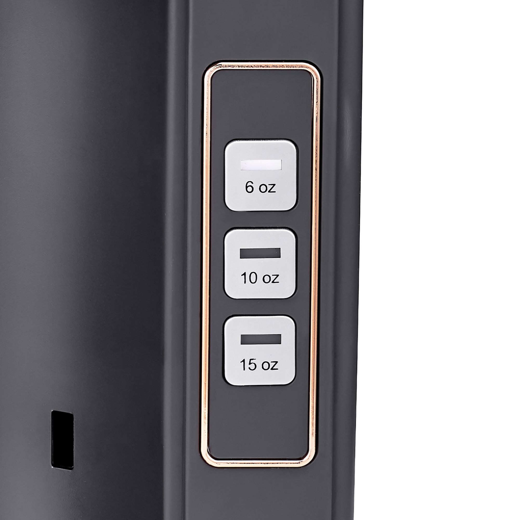 Various three sizes: 6 oz., 10 oz. and 15 oz. allow you to brew (both k-cup and ground coffee) in minutes