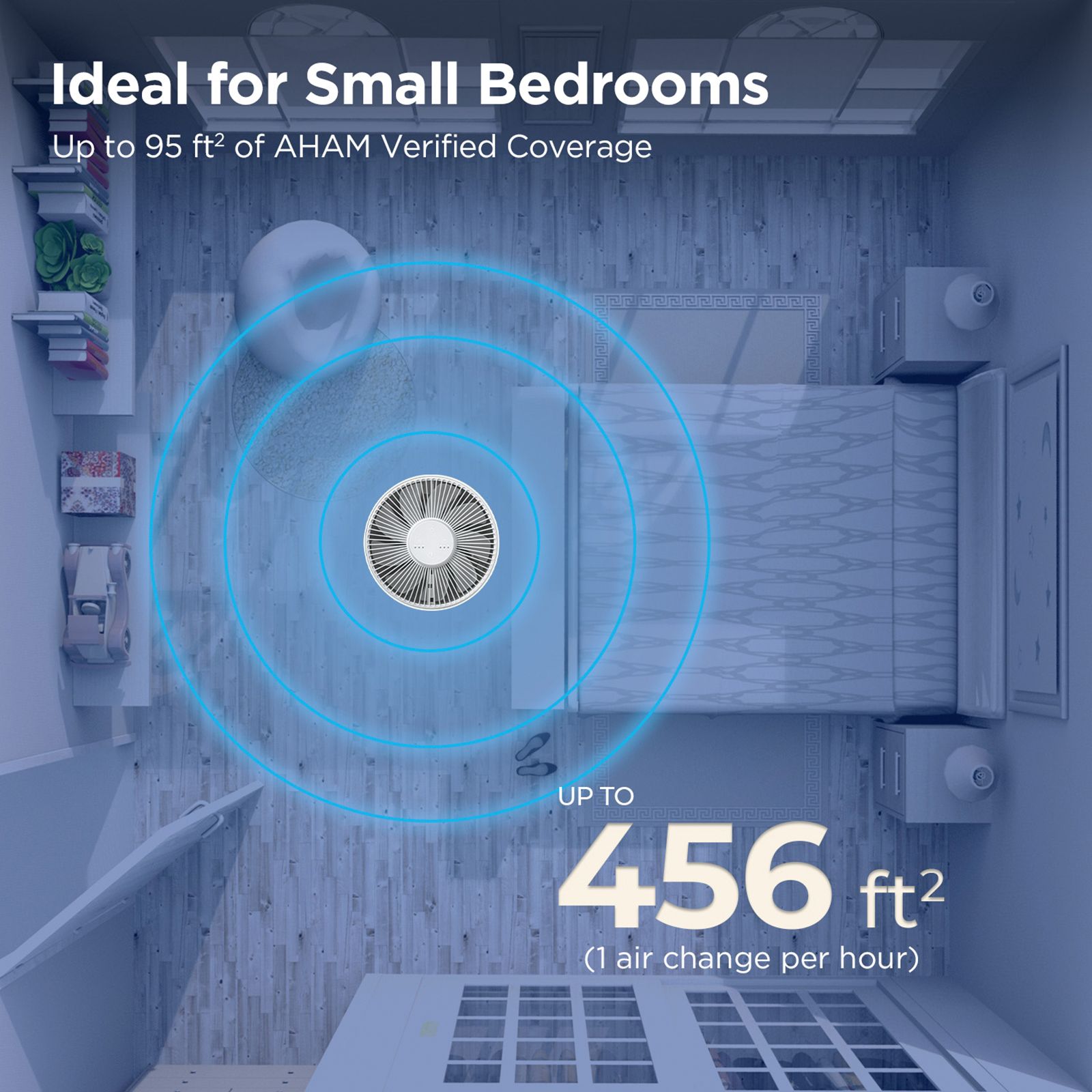 3-Stage Filtration: With a pre-filter, true H13 HEPA filter, and an activated carbon filter, airborne particles such as pet dander, smoke, odor, dust, and more are detected and filtered For Small to Mid-Sized Spaces: Reaching up to 456 square feet, it will work ideally in home offices, small bedrooms, and kids' rooms 3 Color LED Display: Detects cleanliness of indoor air through the dust sensor and displays on screen Sleep Mode: Enjoy a good night’s rest as sleep mode is designed slow down the fan speed and dim the lights for a calm and quiet ambiance