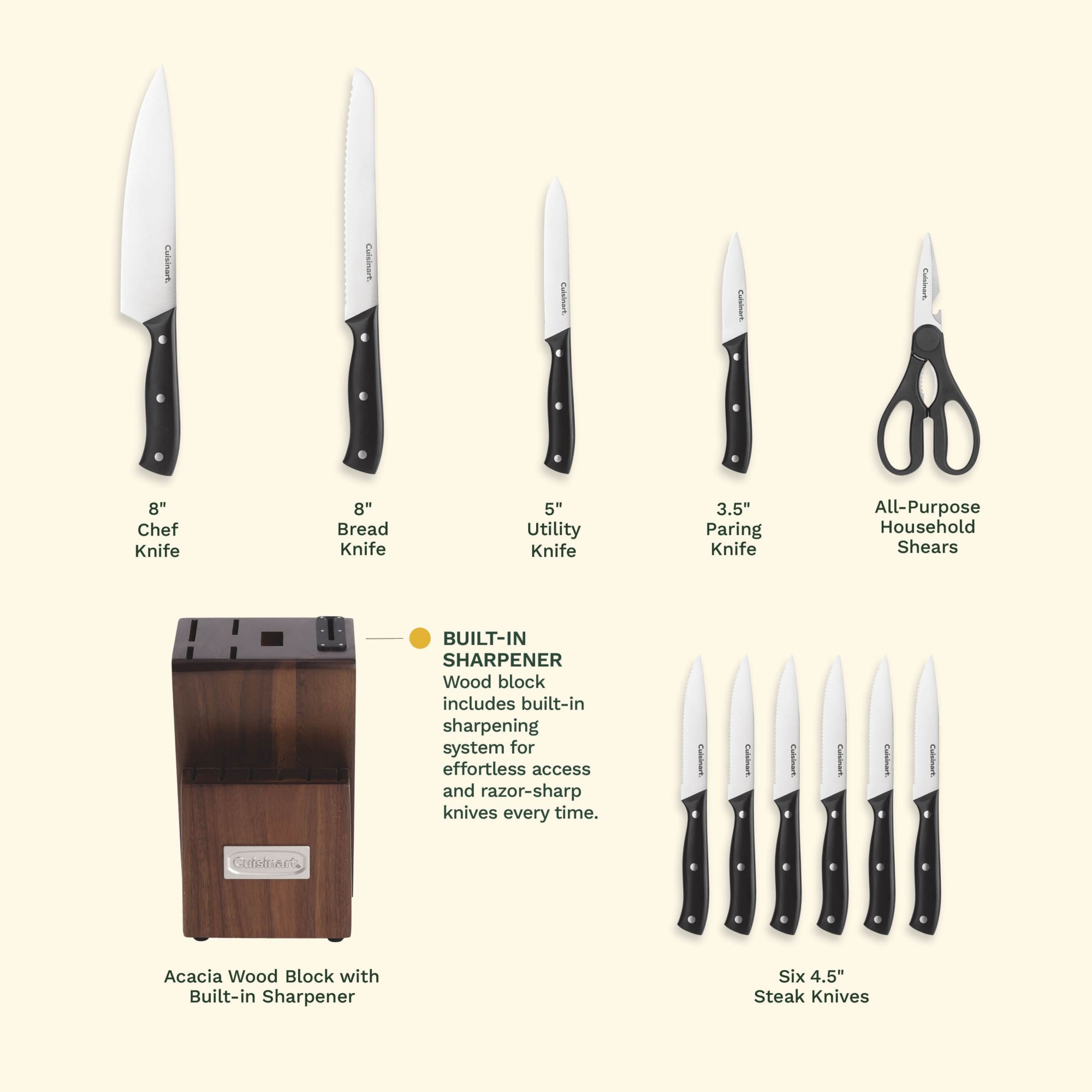 Cuisinart Classic Triple Rivet Stainless Steel Cutlery, 12-Pc. Block Set