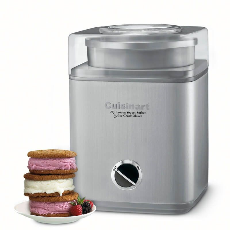 Includes double insulated freezer bowl, recipe book, brushed metal ice cream maker