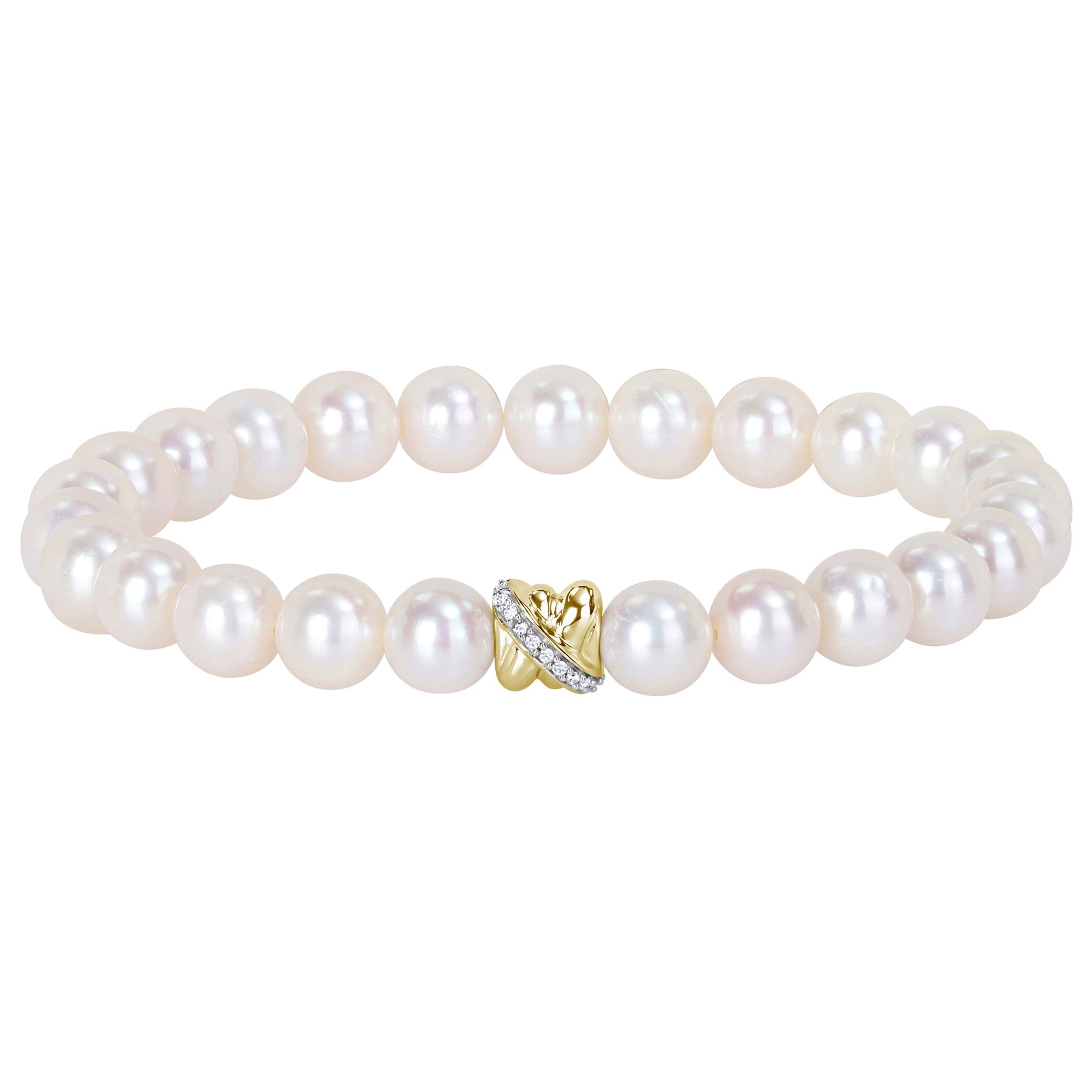 (30 Items)Cultured Freshwater Pearl & Diamond Strand Crossover Bracelet in 14k White Gold