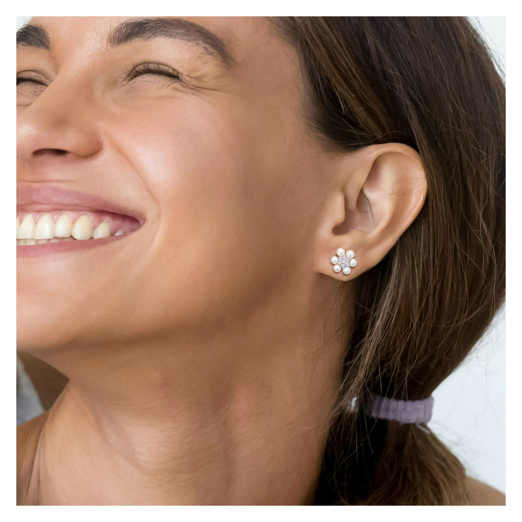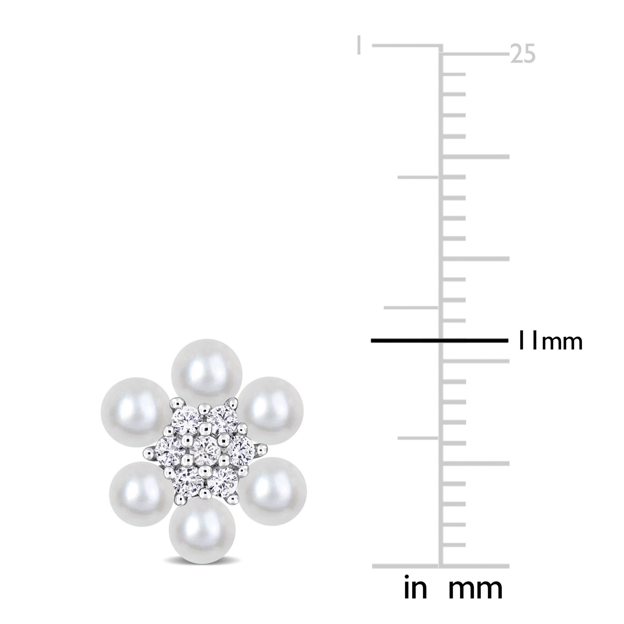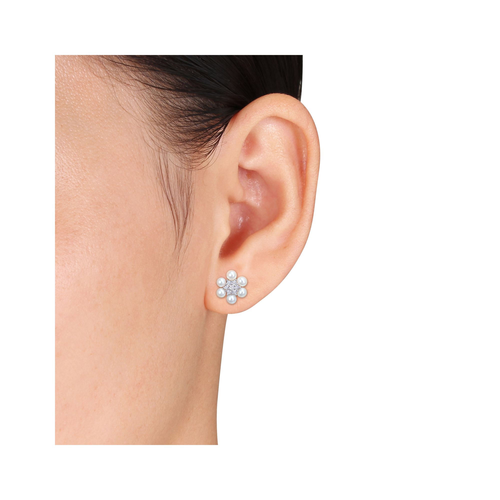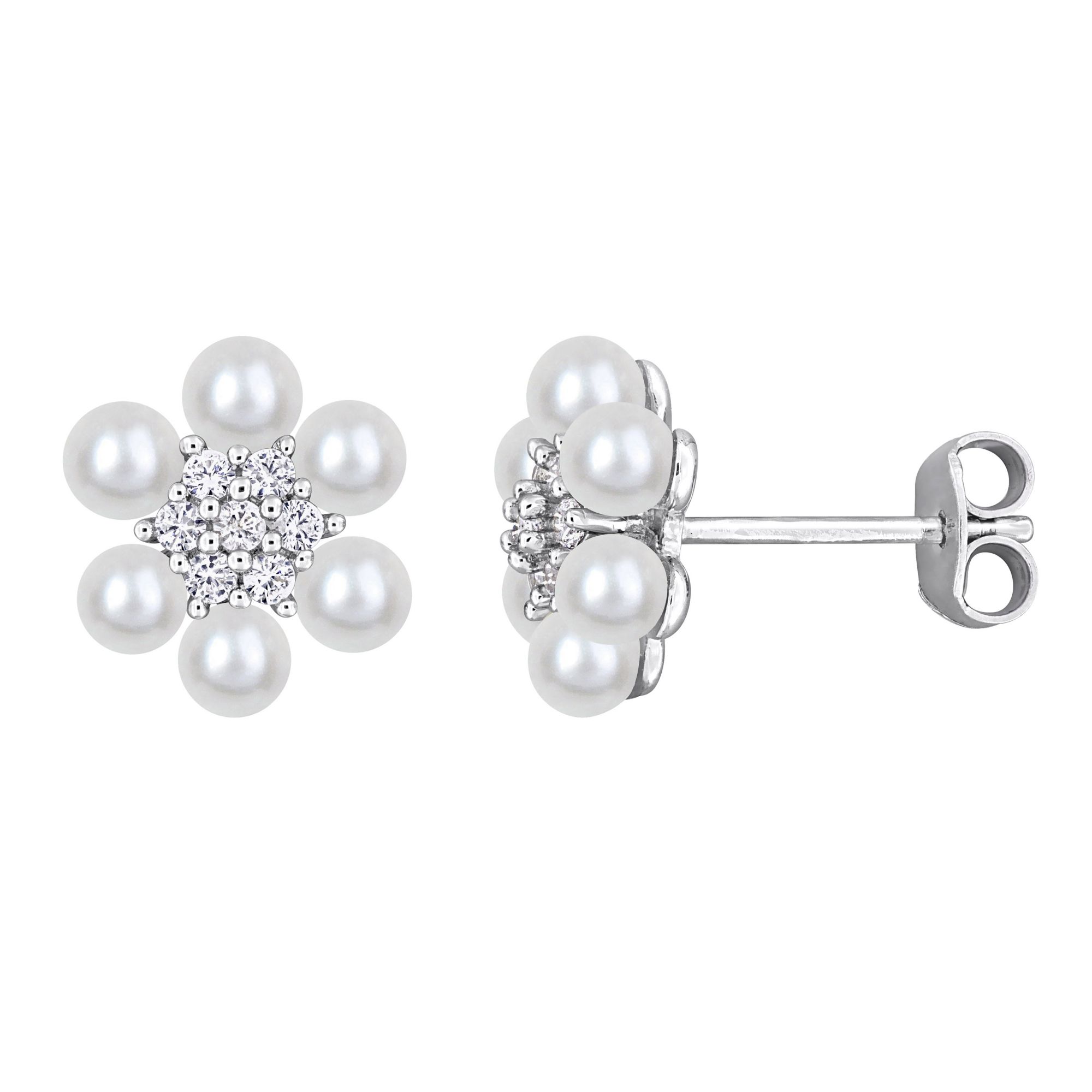 Cultured Freshwater Pearl and .3 ct. TGW Created White Sapphire Flower Cluster Stud Earrings in Sterling Silver