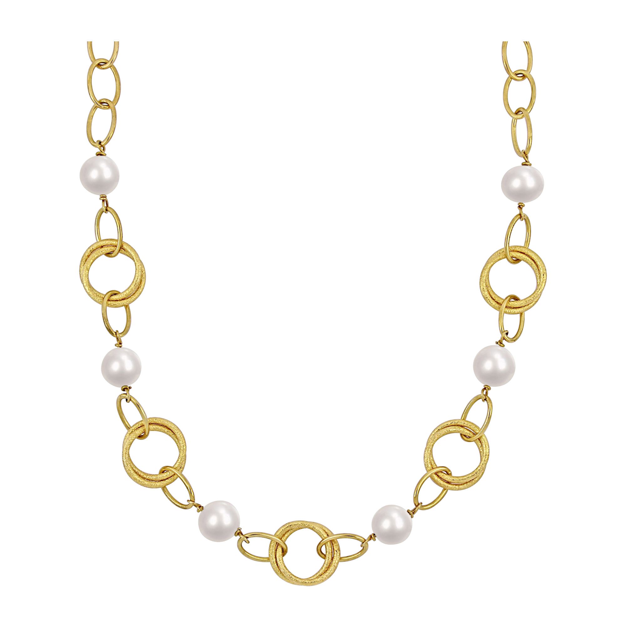 Cultured Freshwater Pearl and Circle Rings Station Necklace in 18k Gold Plated Silver
