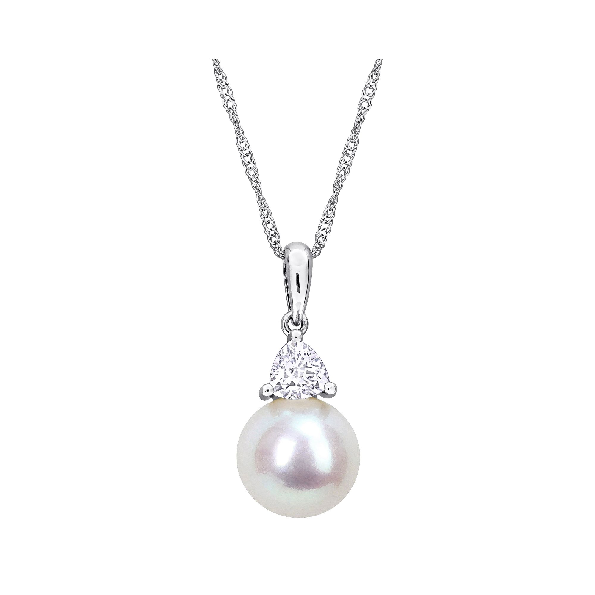 Cultured Freshwater Pearl and Gemstone Solitaire Necklace in 10k White Gold