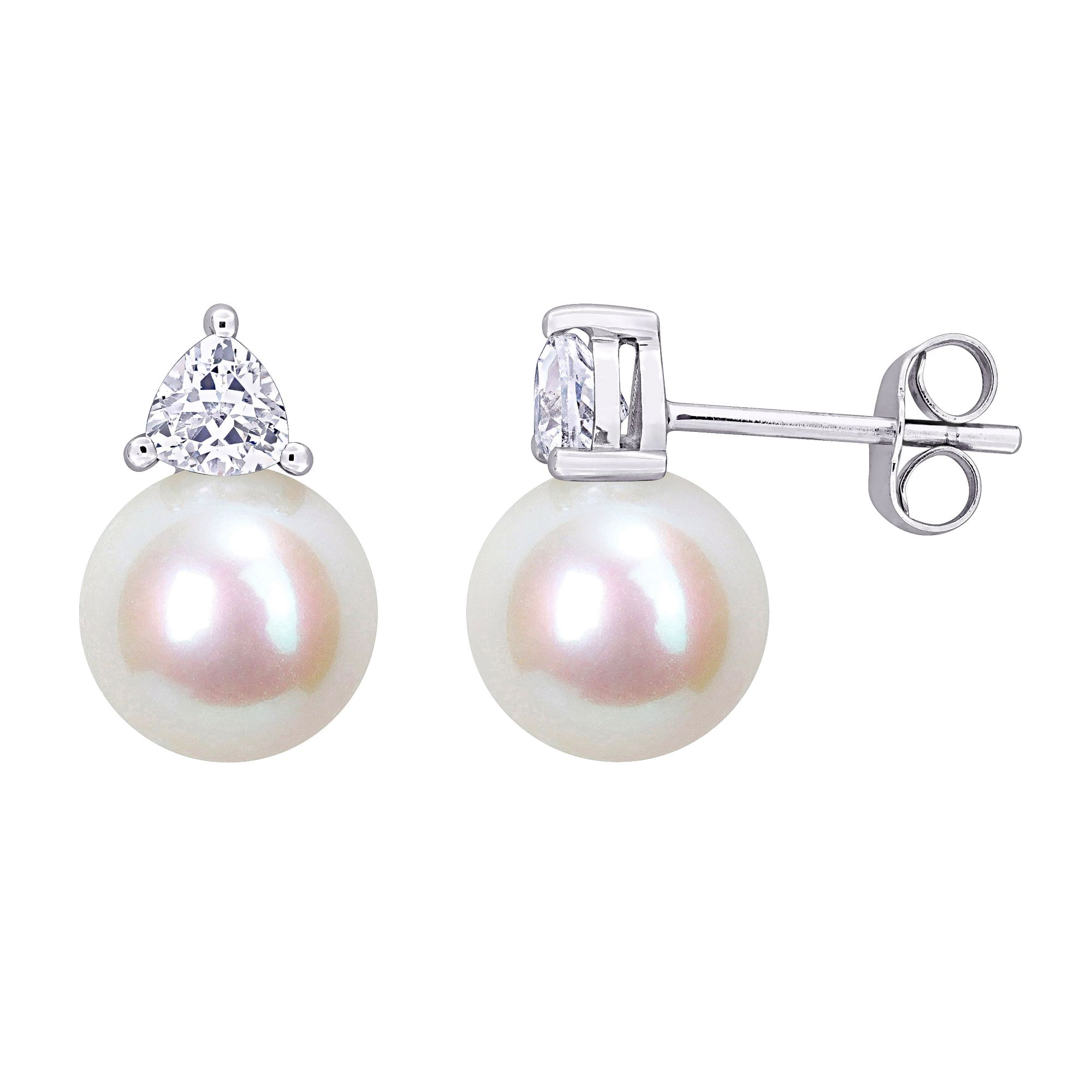 (30 Items)Cultured Freshwater Pearl and Gemstone Stud Earrings in 10k White Gold