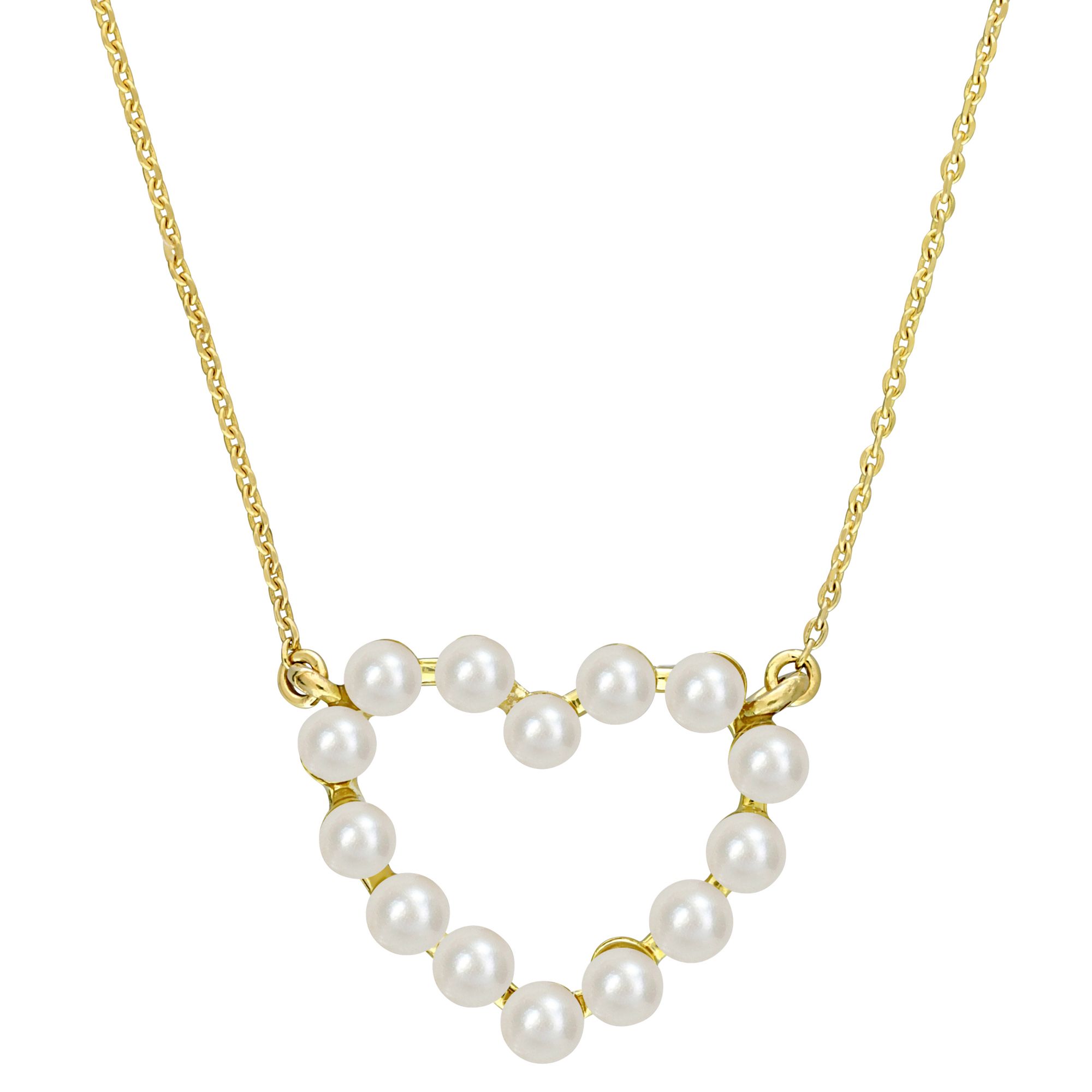 Cultured Freshwater Pearl Heart Necklace in 14k Yellow Gold