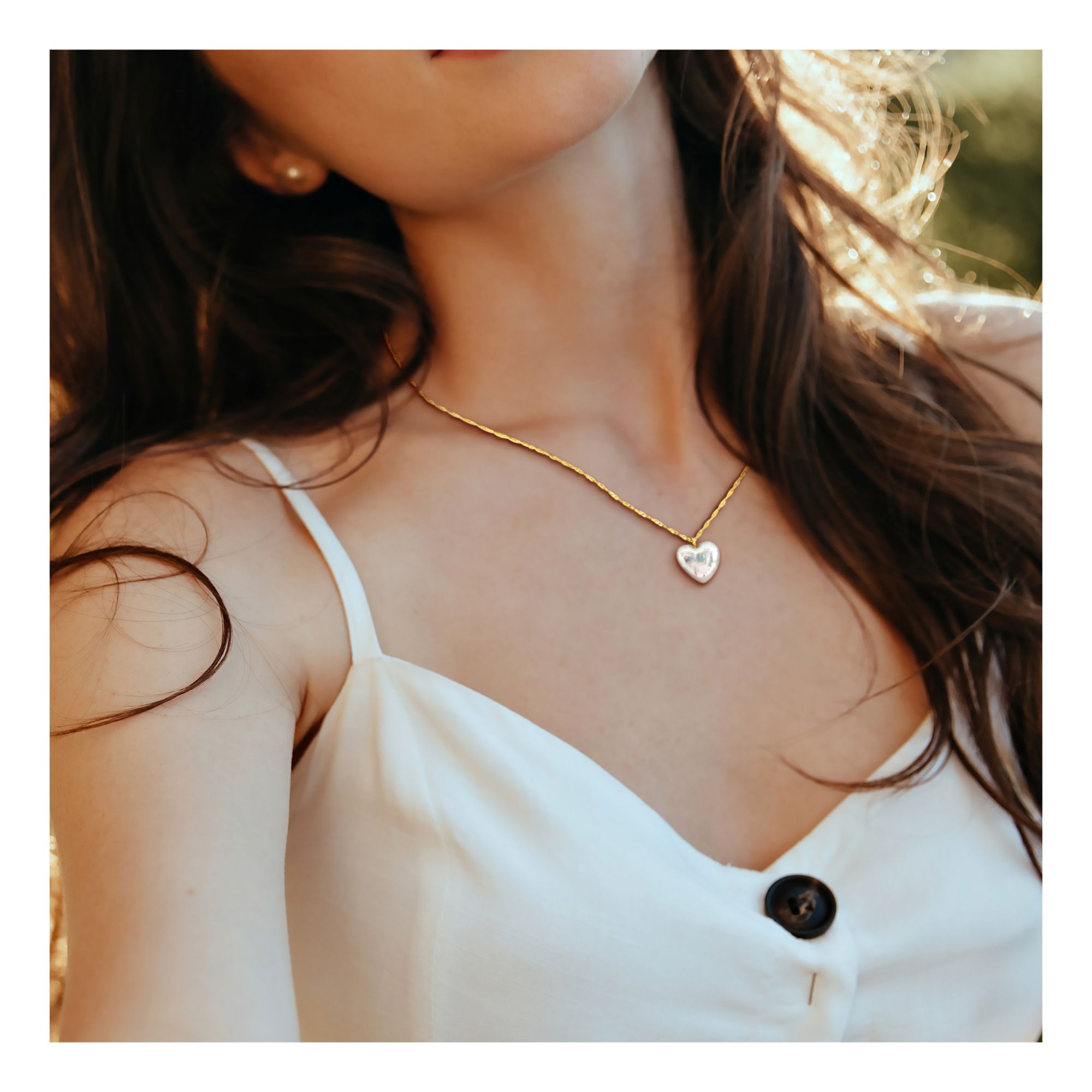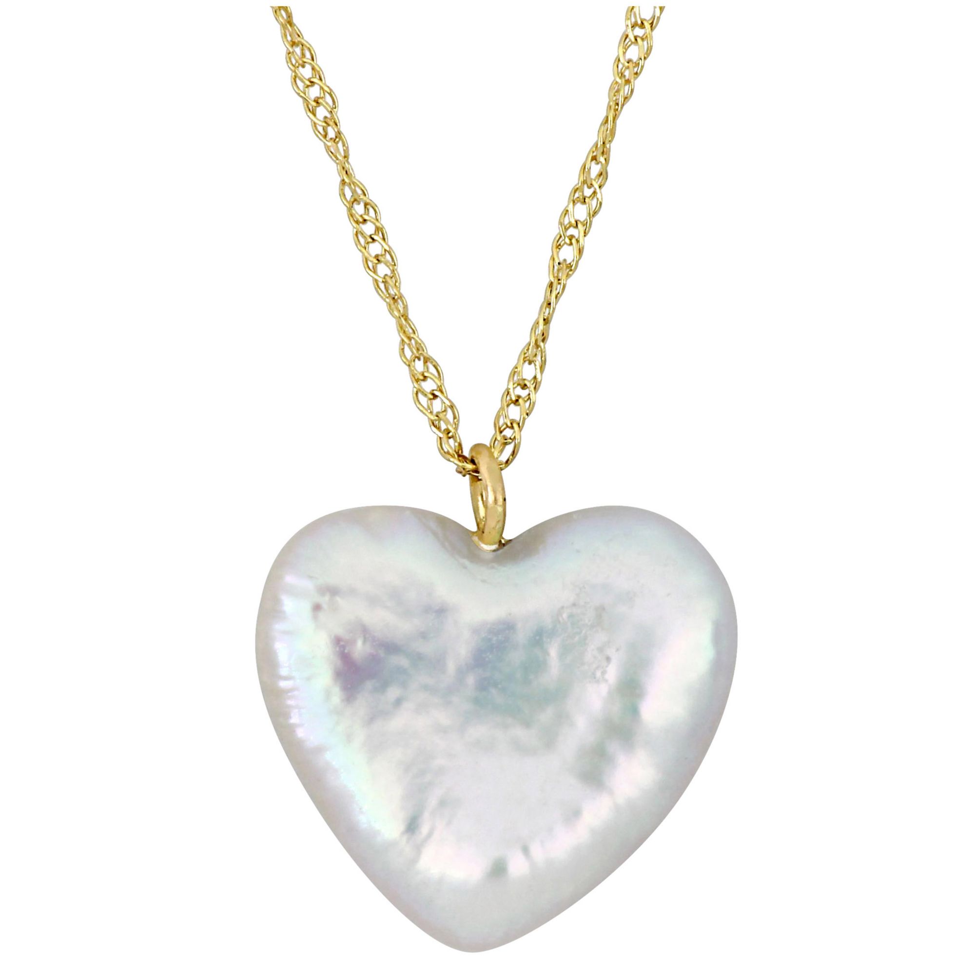 Cultured Freshwater Pearl Heart Pendant Necklace in 14k Yellow Gold