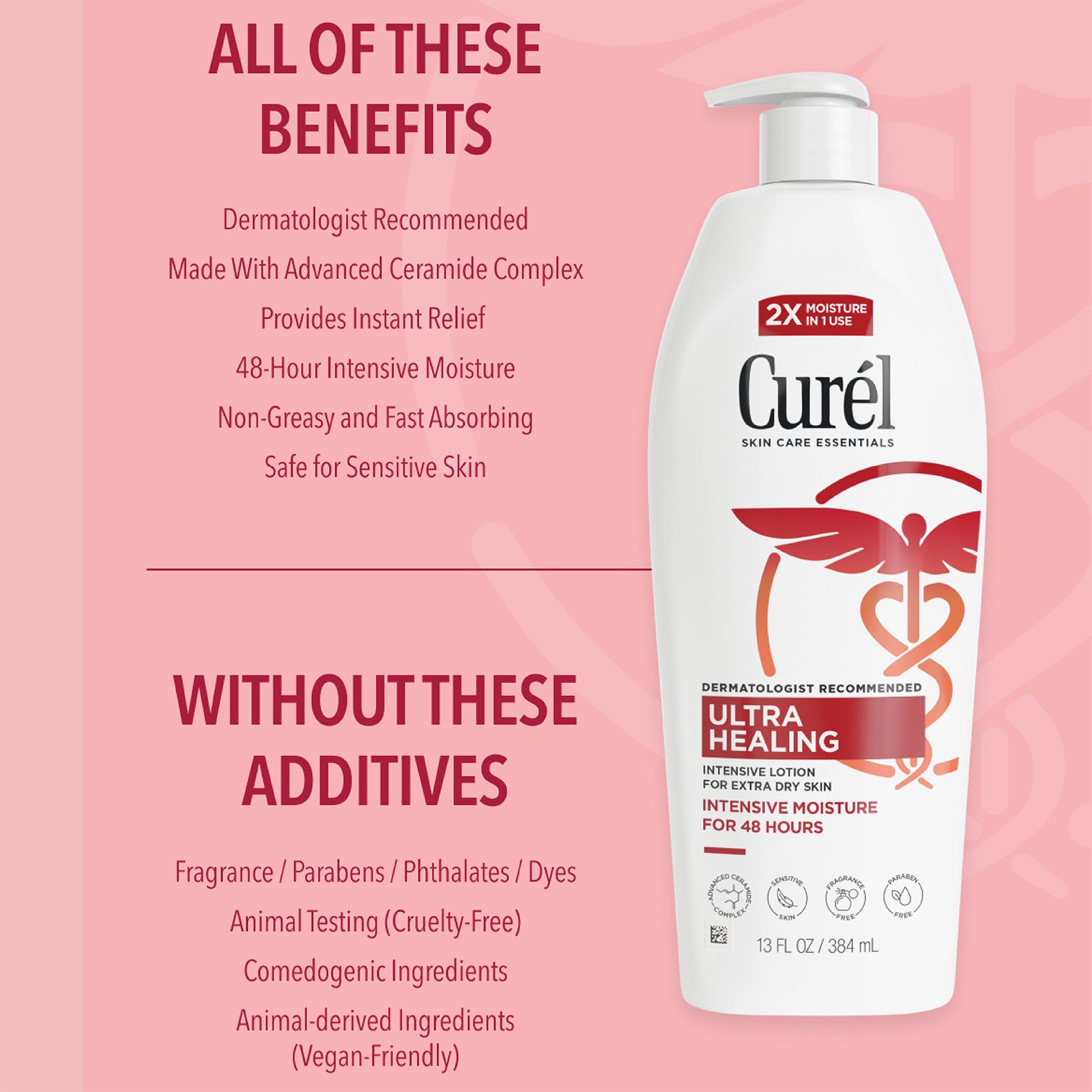 Ultra Healing Lotion provides instant relief and intensive moisture for 48 hours and moisturizes 2X better than the leading therapeutic lotion