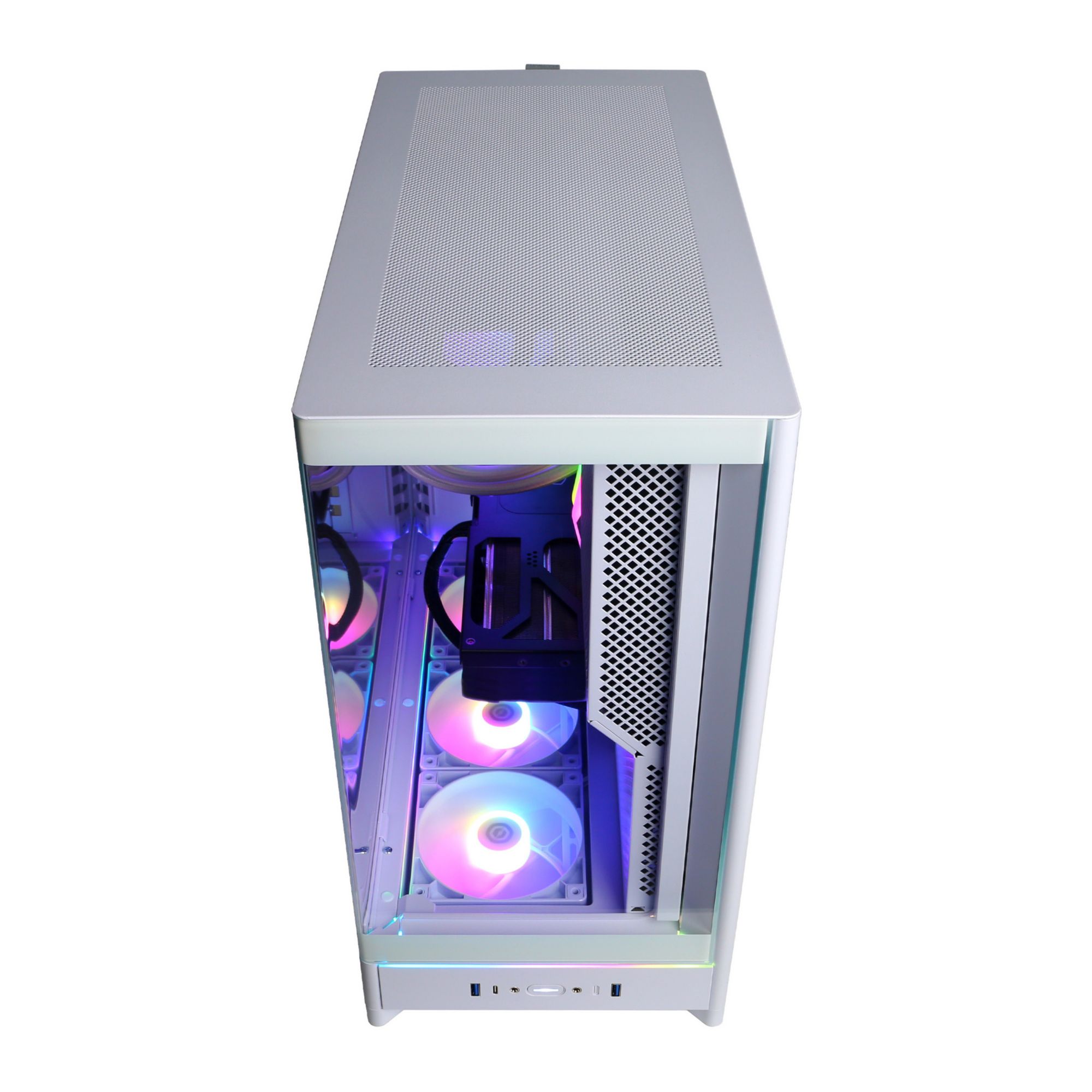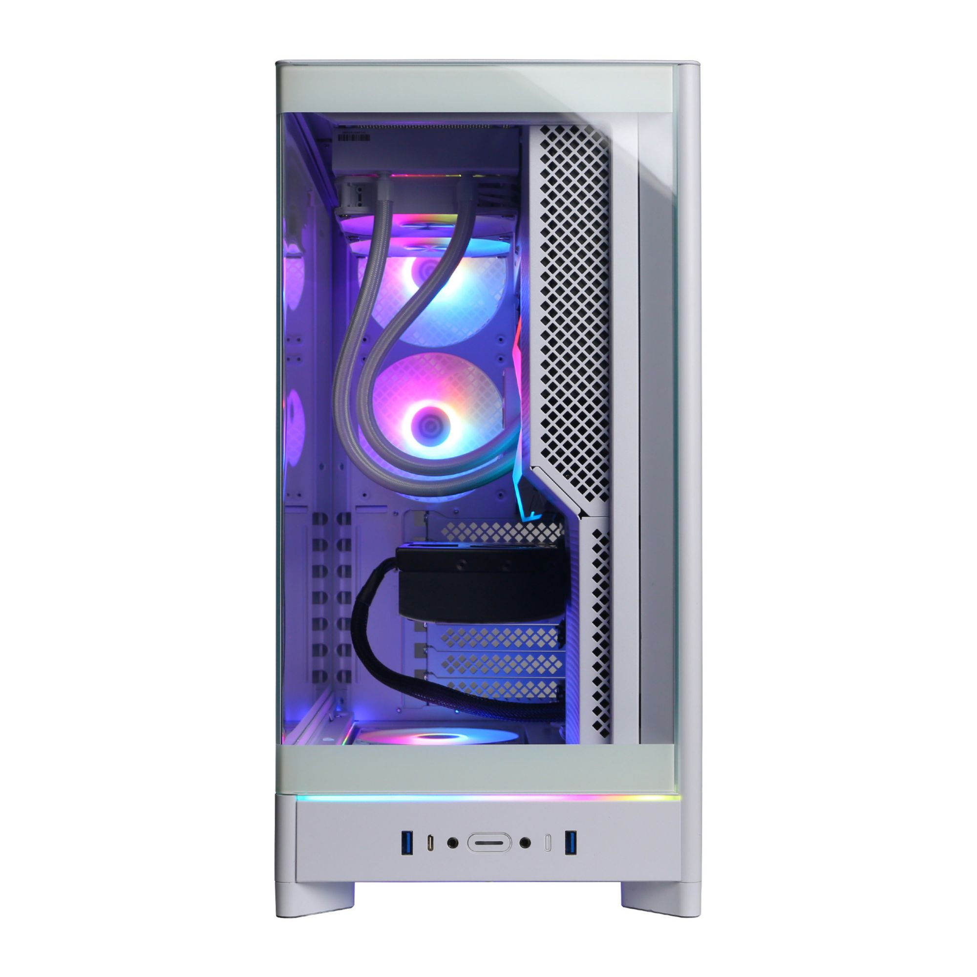 At the heart of the Gamer Supreme is a liquid-cooled 14th Gen Intel Core i7-14700F processor that can deliver P- and E-core clock speeds up to 5.3 GHz and 4.2 GHz, respectively, for intense gaming or image processing. This system includes 32GB of DDR5 RAM, and with a total of four DIMMs, you can install up to 192GB of memory for enhanced multitasking capabilities and render speeds. Build a large library of games with a 2TB M.2 PCIe 4.0 NVMe SSD, which decreases program load times and increases general responsiveness. Experience high-definition gaming and design complex graphics with the dedicated NVIDIA GeForce RTX 5070 Ti graphics card, backed by 16GB of GDDR7 VRAM for enhanced operation. Plug in your peripherals, such as the included keyboard and mouse, with an array of USB-A 2.0 and 3.2 Gen 1 ports. Wi-Fi 6 (802.11ax) and Gigabit Ethernet networking options are available, allowing you to use wireless networking or a wired connection.