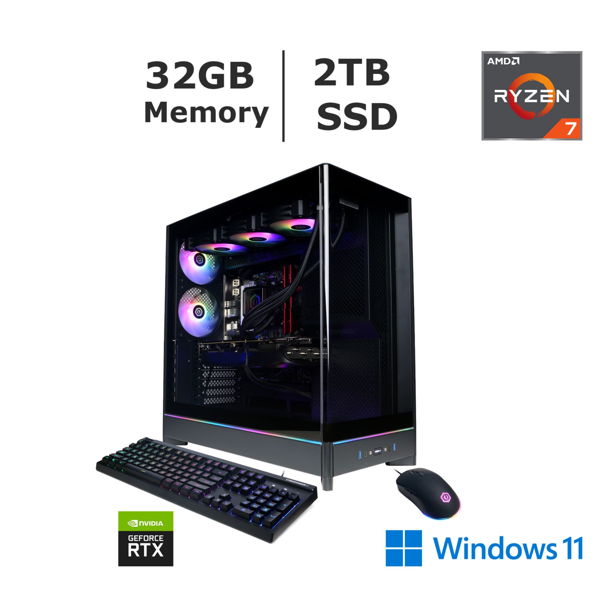CYBERPOWERPC Gamer Supreme SLC11040CPG Liquid Cool Gaming Desktop, AMD Ryzen 7 Processor, 32GB Memory, 2TB SSD, NVIDIA GeForce