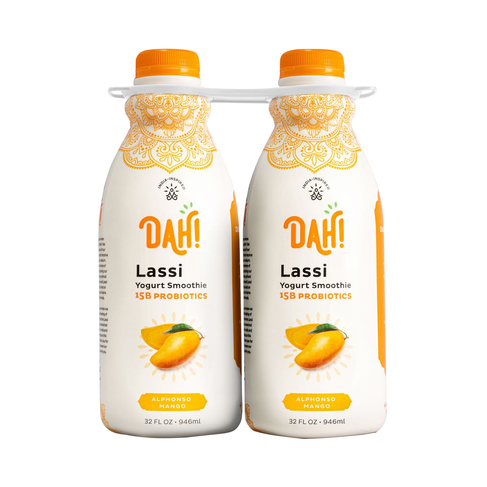 Dah! Lassi Alphonso Mango Yogurt Smoothie is a drinkable yogurt with 15 billion probiotics per serving. This delicious smoothie is made with real fresh fruit and 62% less added sugar. It has a smooth, rich texture, and is made without preservatives.
